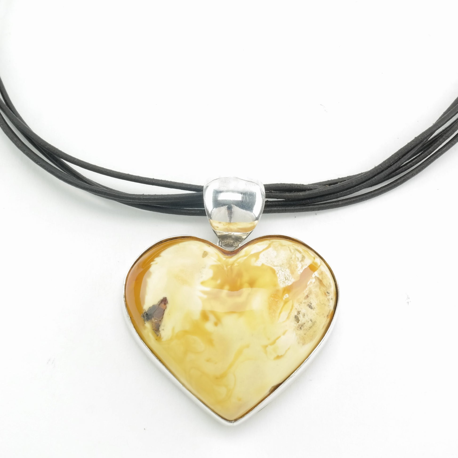 Vintage Sterling Silver Yellow Amber Heart Necklace