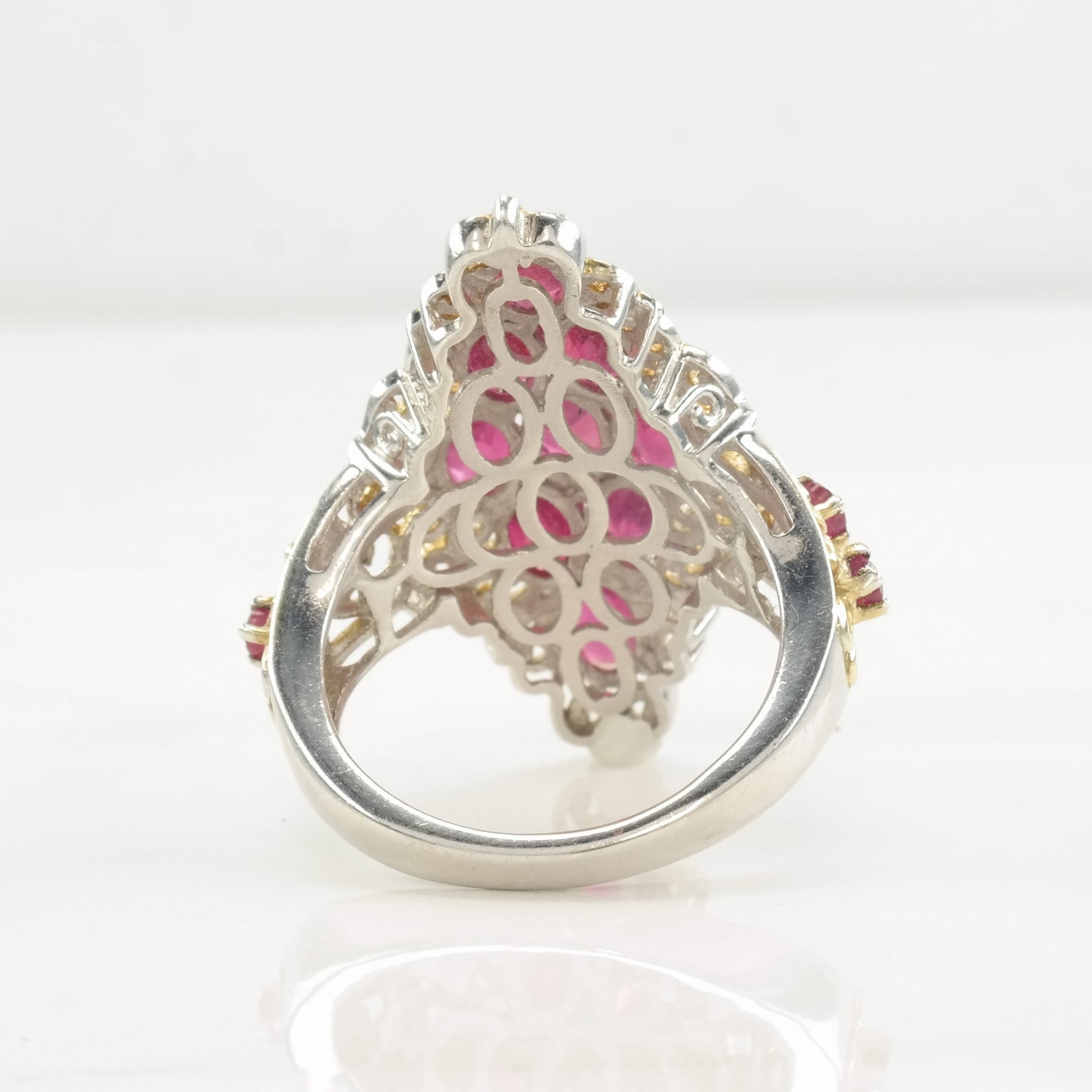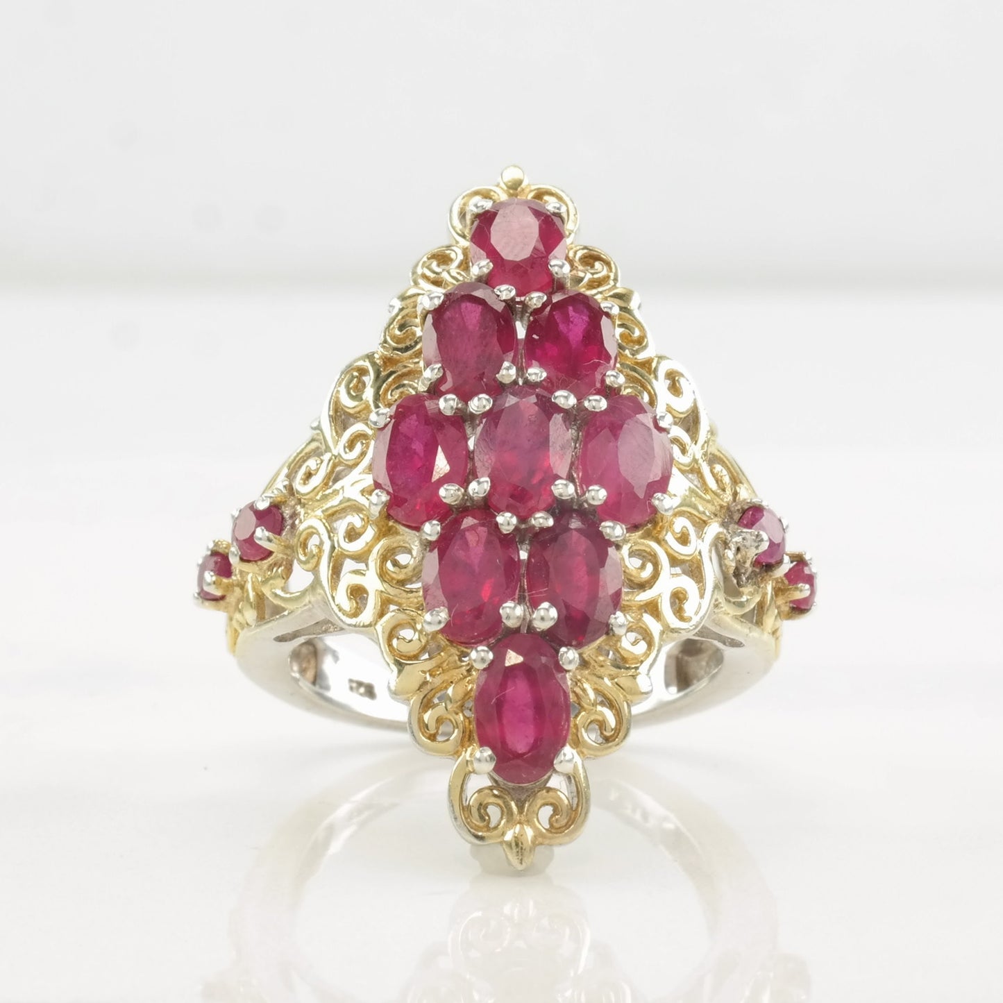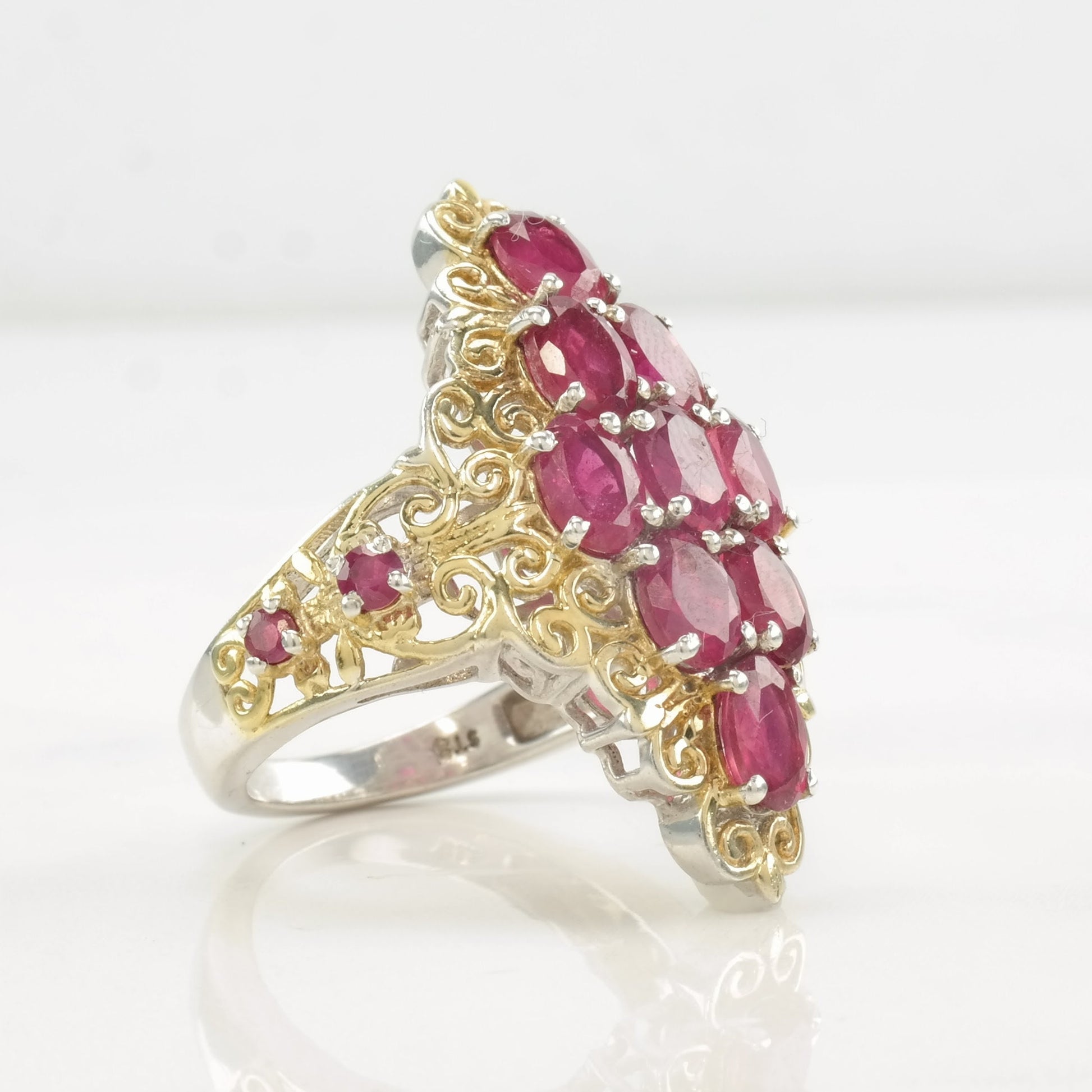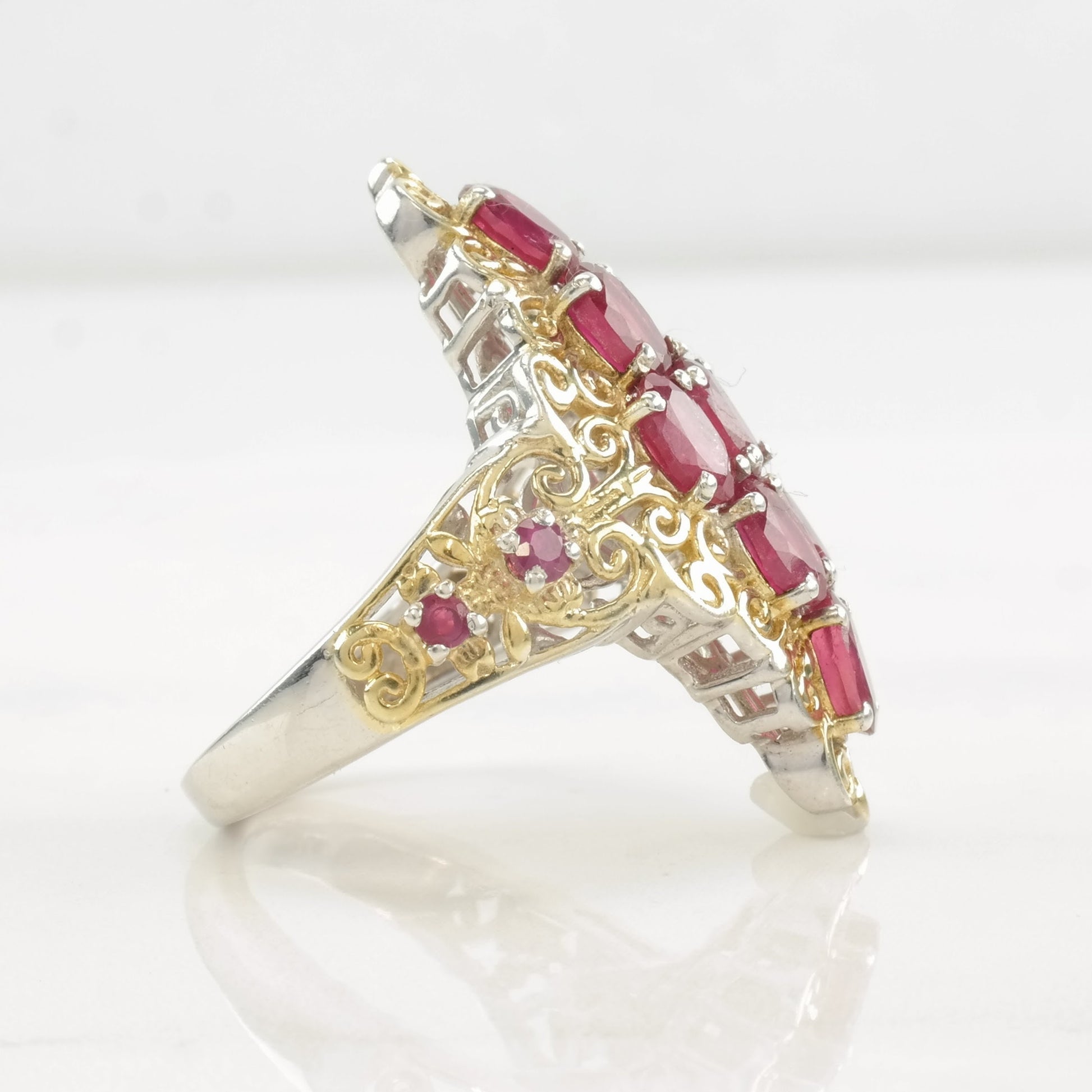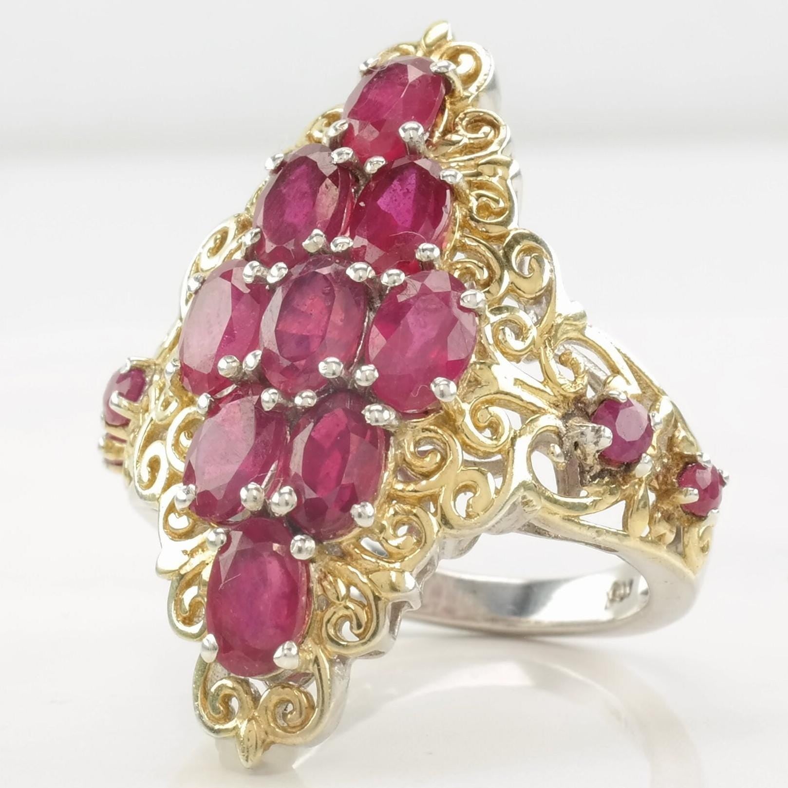 Vintage STS Ring Glass Filled Ruby, Cluster Gold Tone Sterling Silver Size 9 1/4