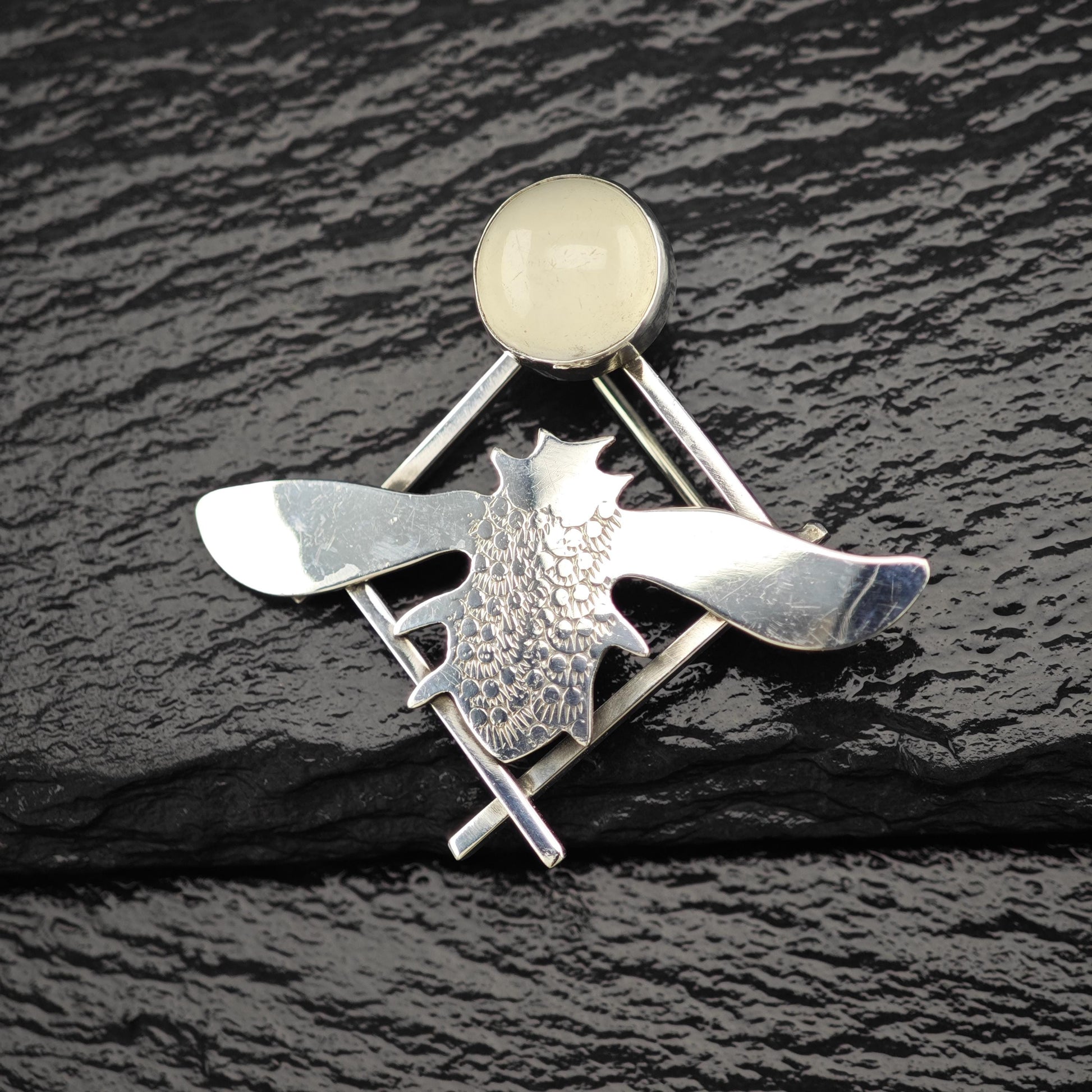 Vintage Studio, Artist Sterling Silver Brooch Insect White Quartz
