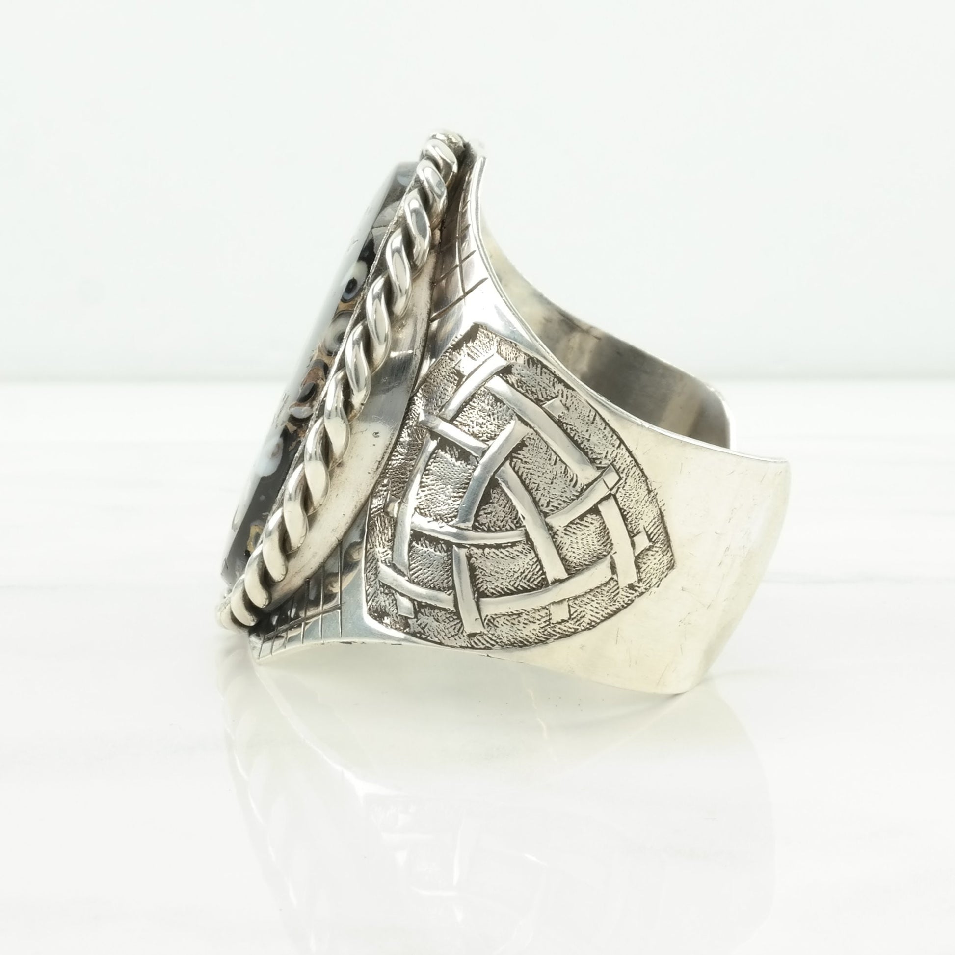 Vintage Studio Sterling Silver Cuff Bracelet Black Odd Natural Gemstone Large