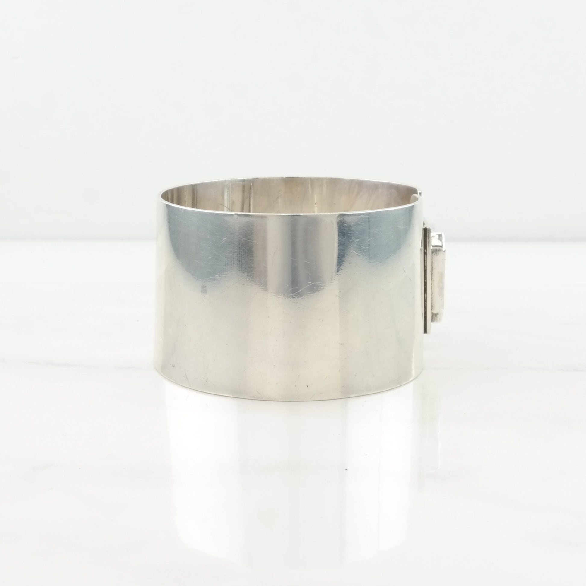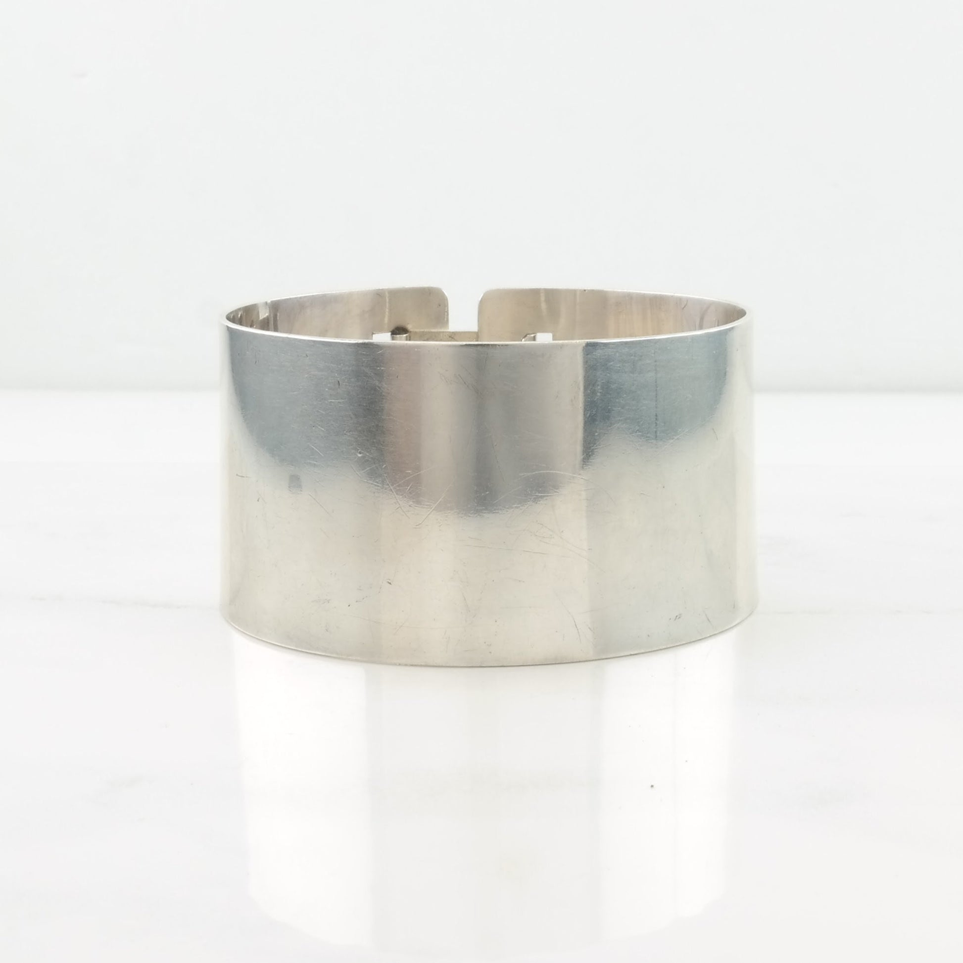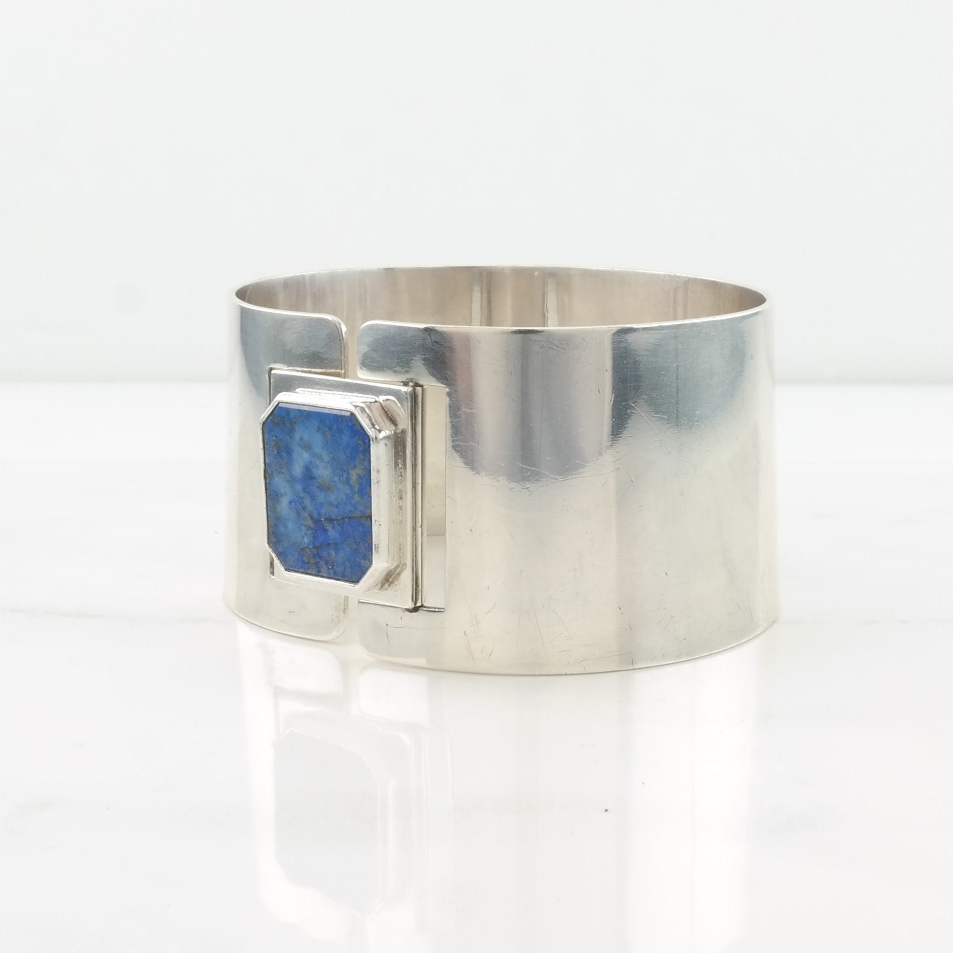 Vintage Sweden Sterling Silver Bangle Bracelet Blue Lapis Lazuli Wide, Modernist