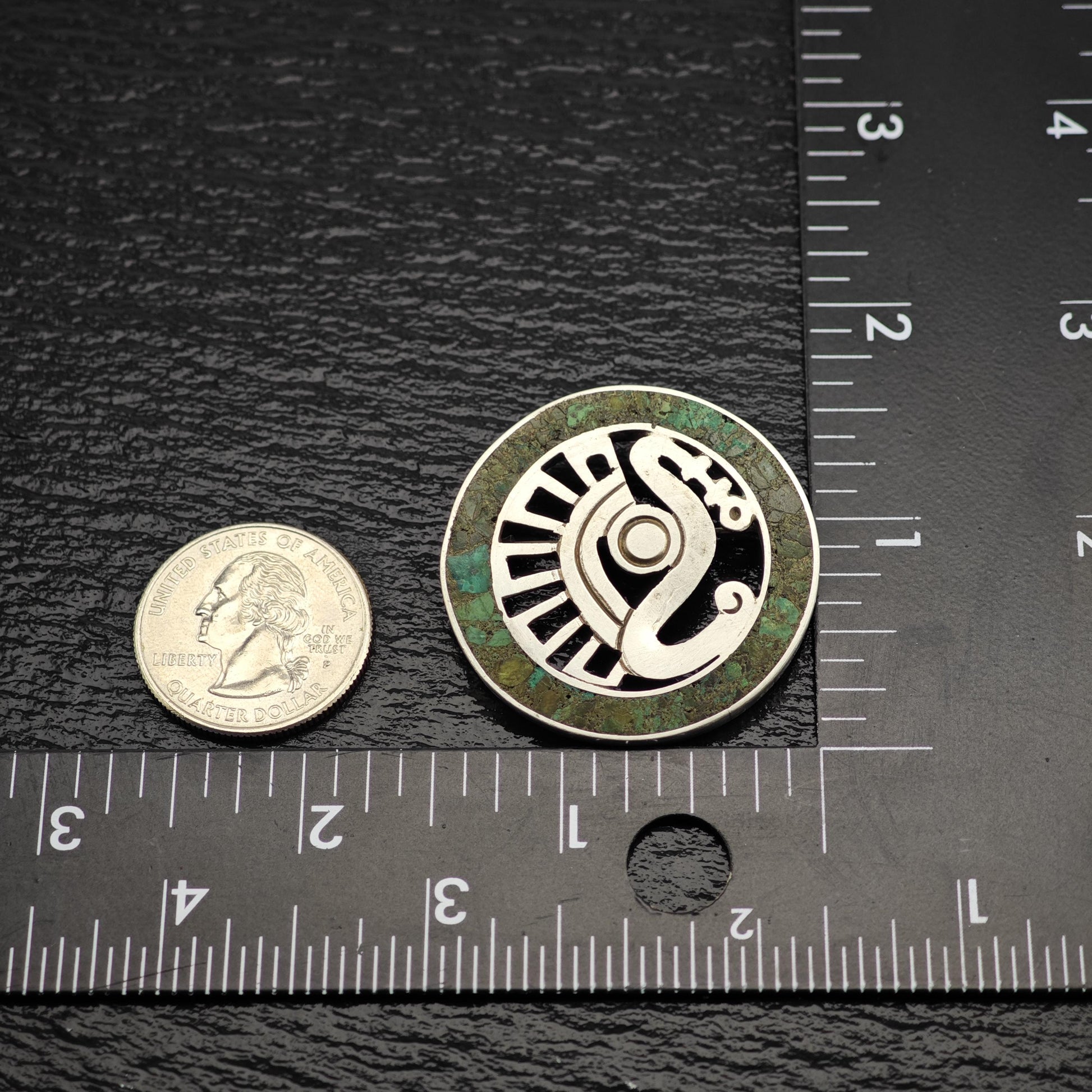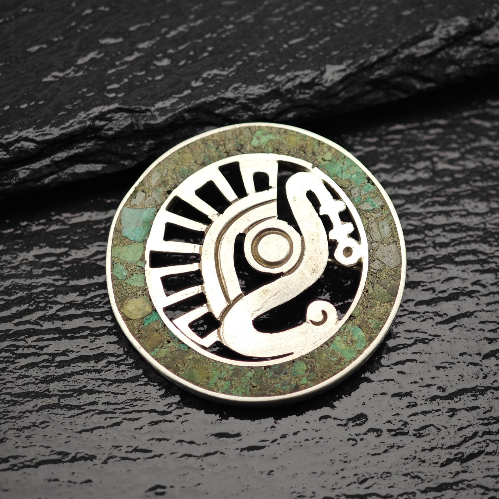 Vintage Taxco Green Chrysocolla Inlay Sterling Silver Brooch