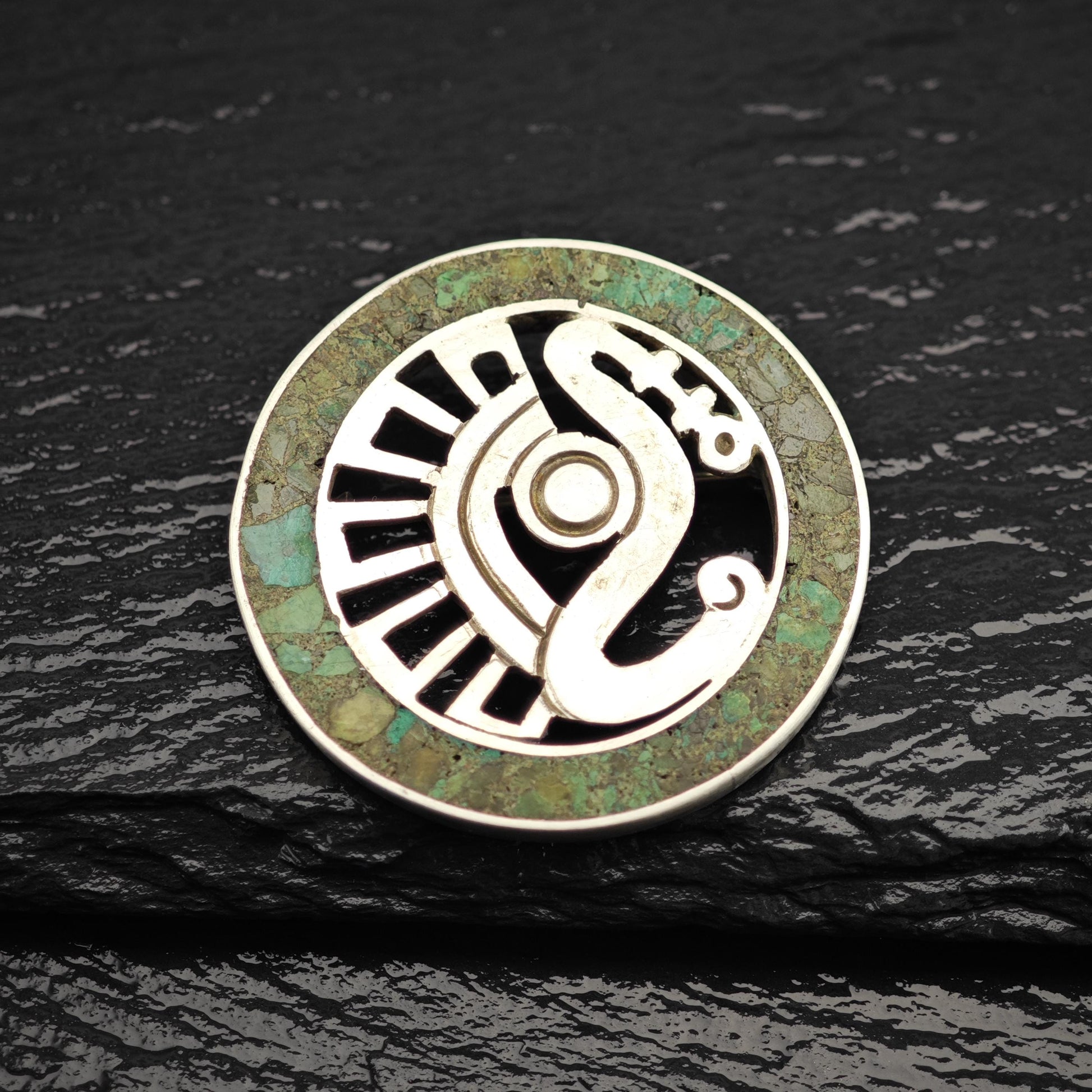 Stone or design featured on this brooch is Chrysocolla Inlay