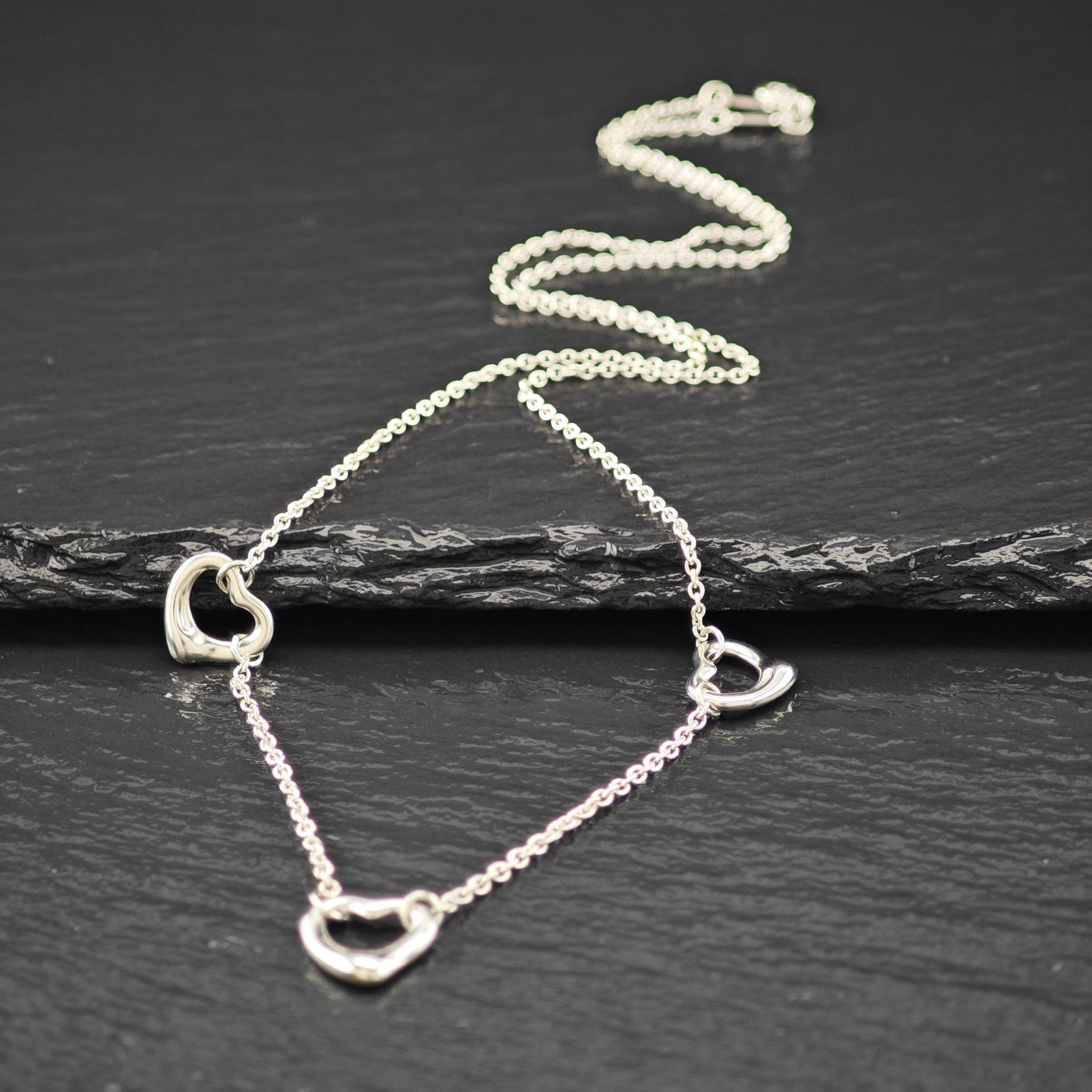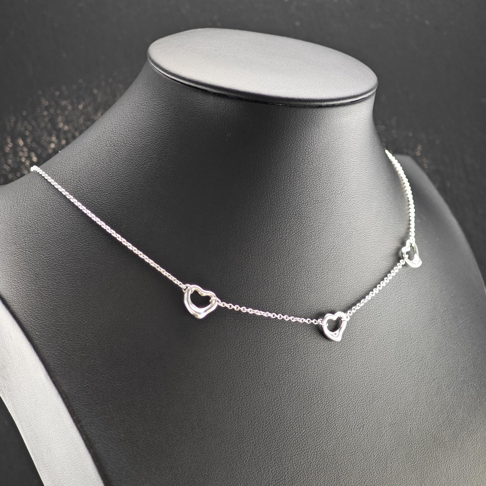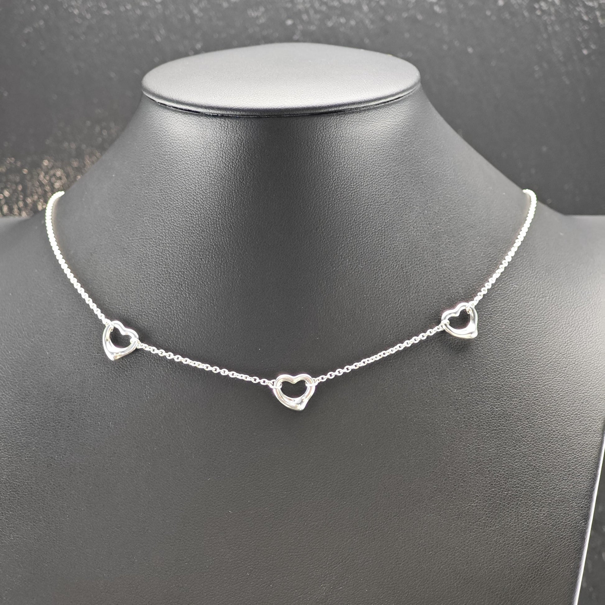Vintage Tiffany & Co. Sterling Silver Open Heart Station Necklace