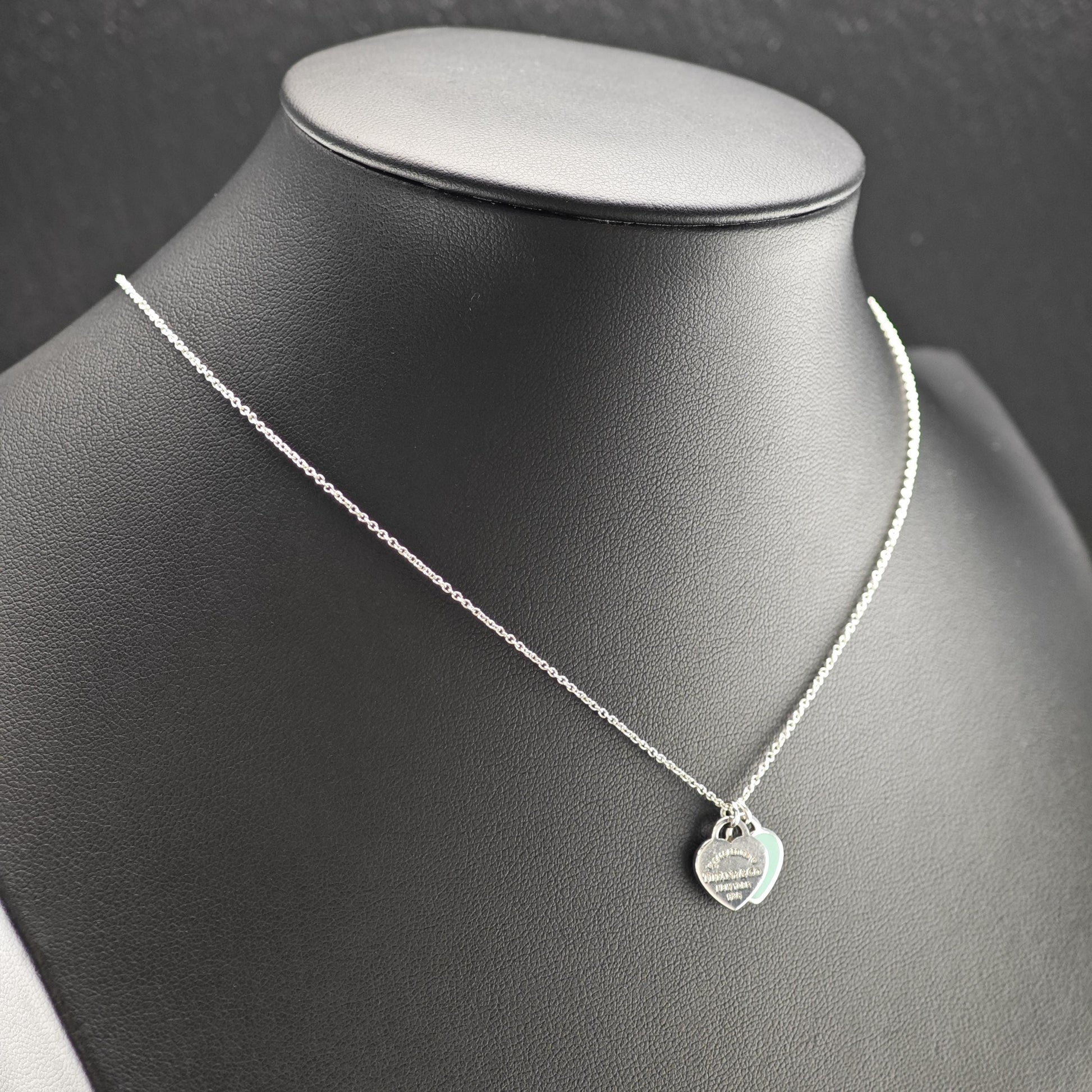Vintage Tiffany Sterling Silver Teal Double Heart Enamel Necklace