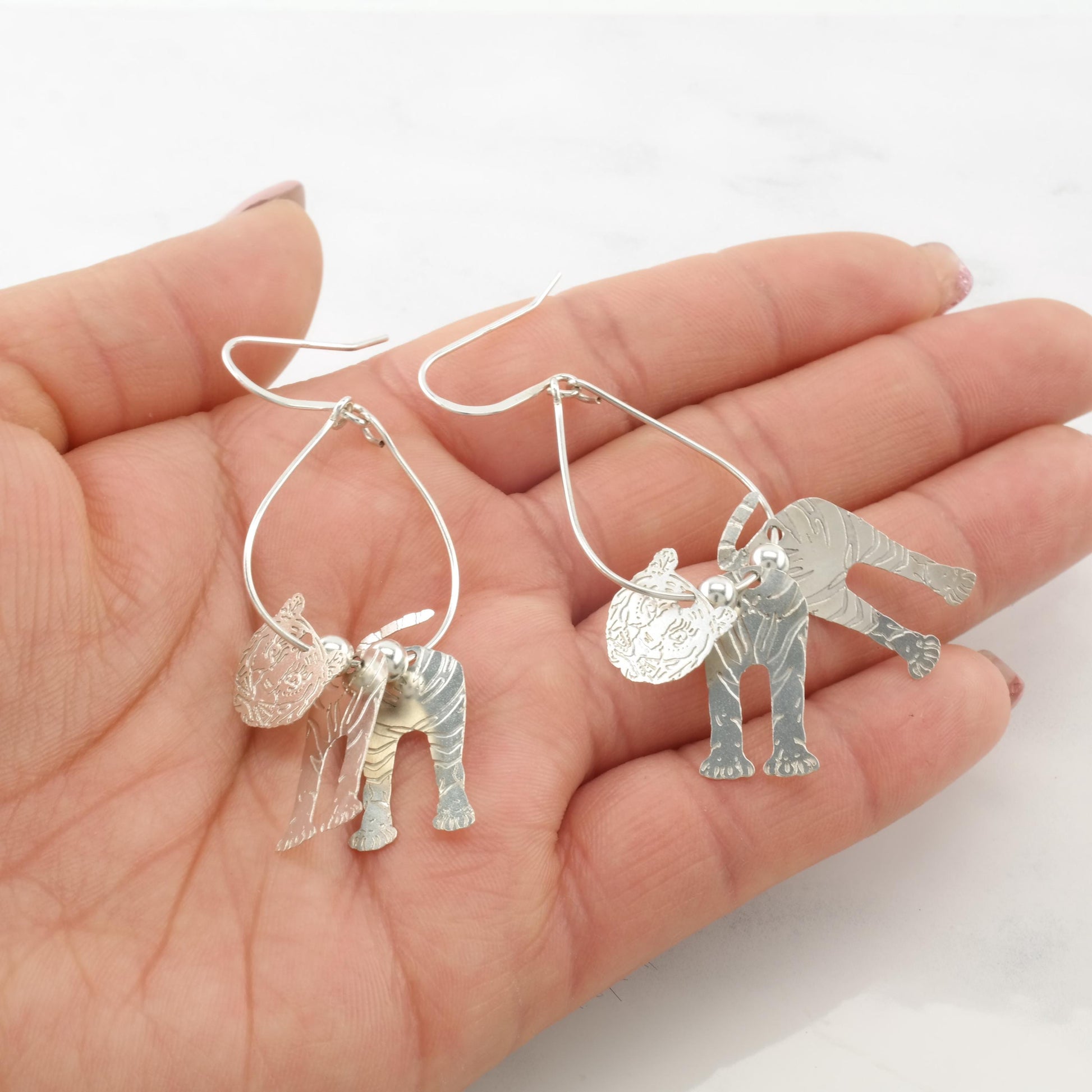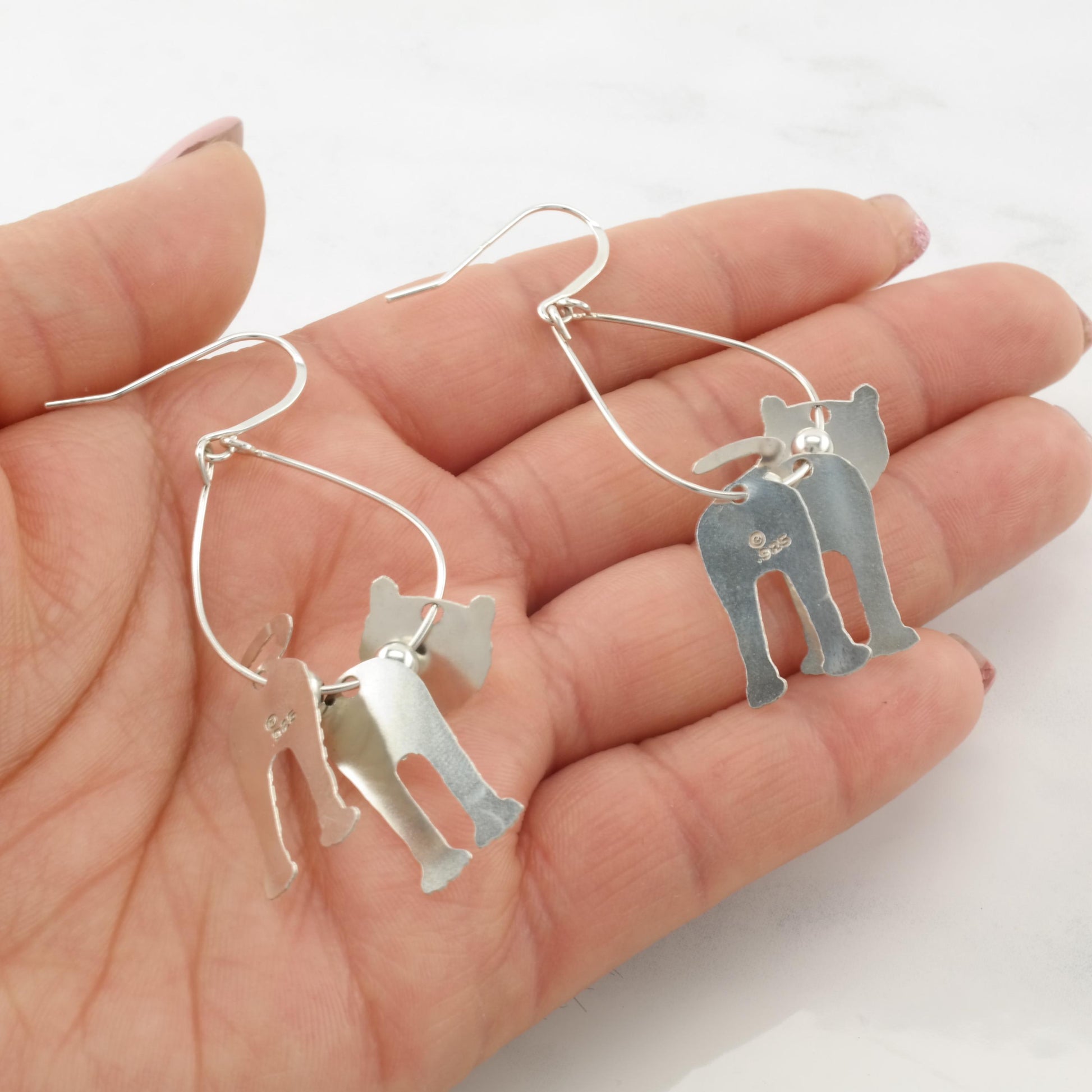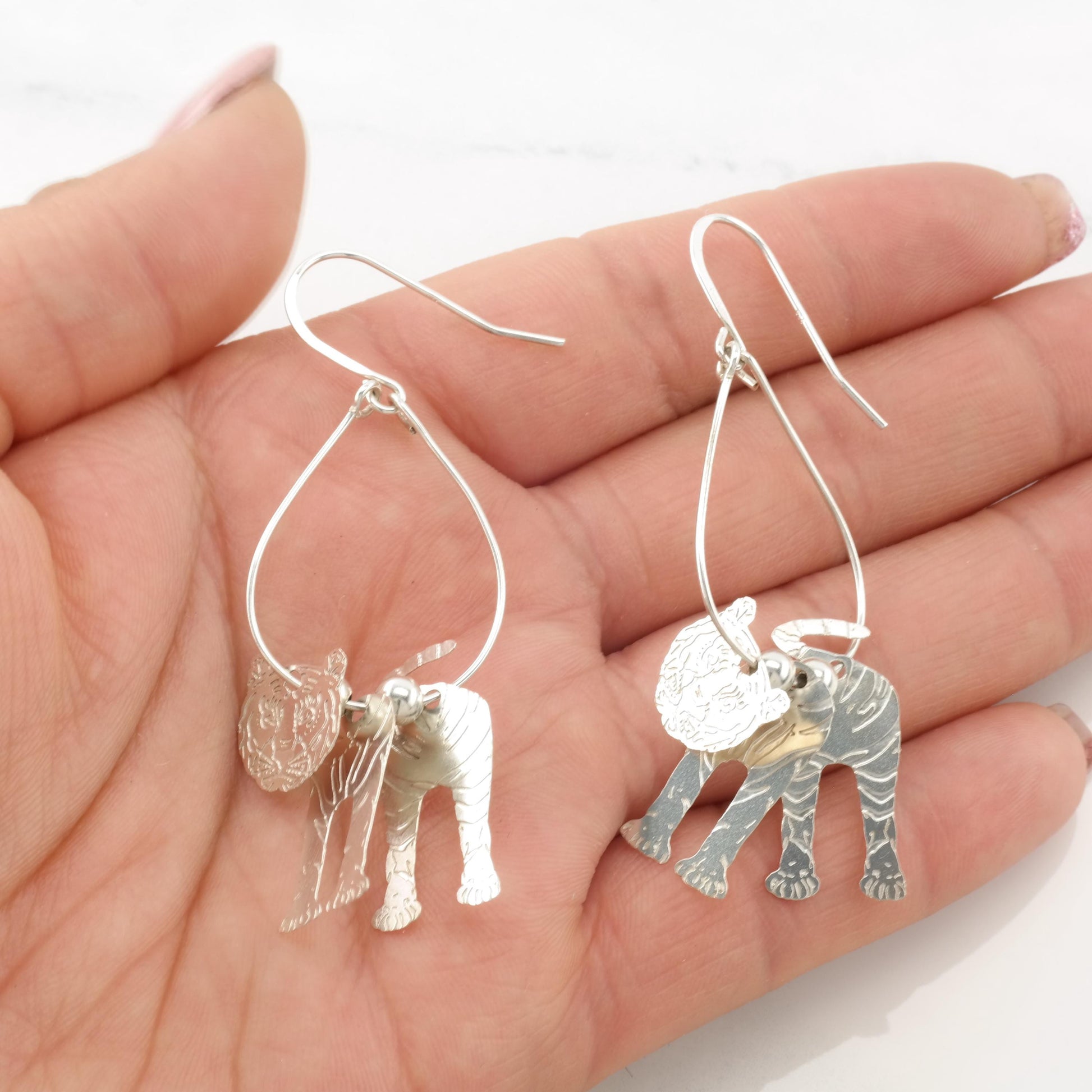 Vintage Tiger Sterling Silver Fish Hook Earrings