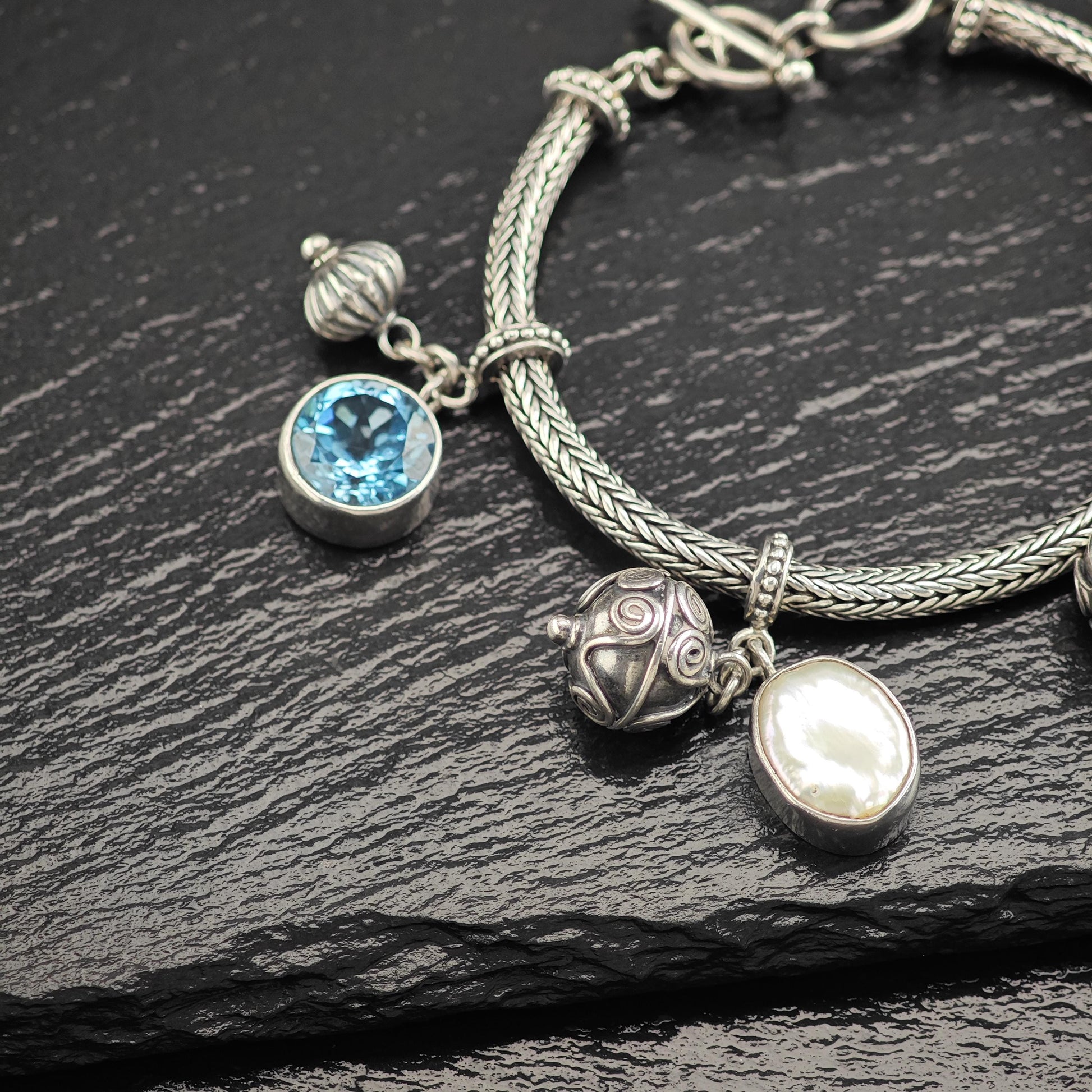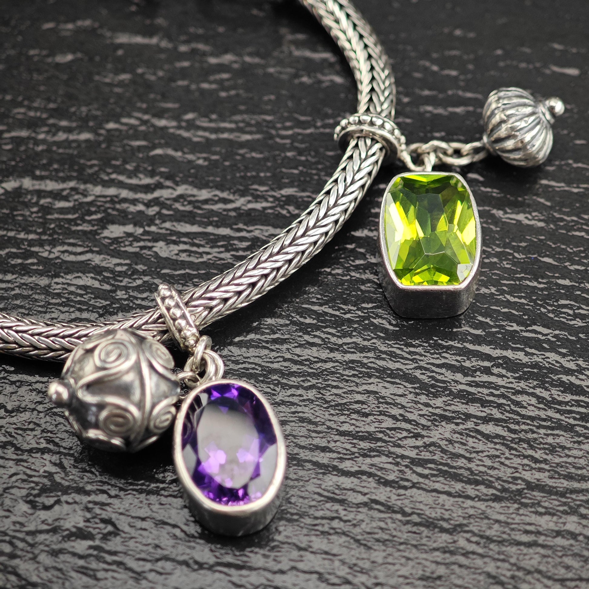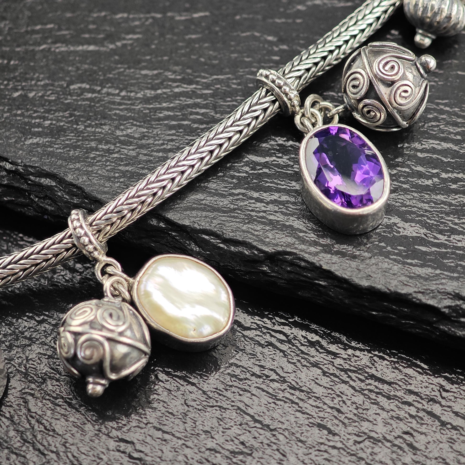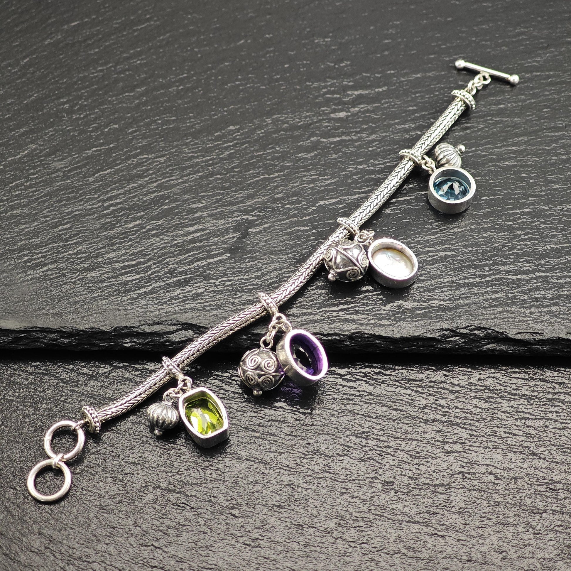 Vintage Topaz, Amethyst, Pearl, Charm Bracelet Sterling Silver
