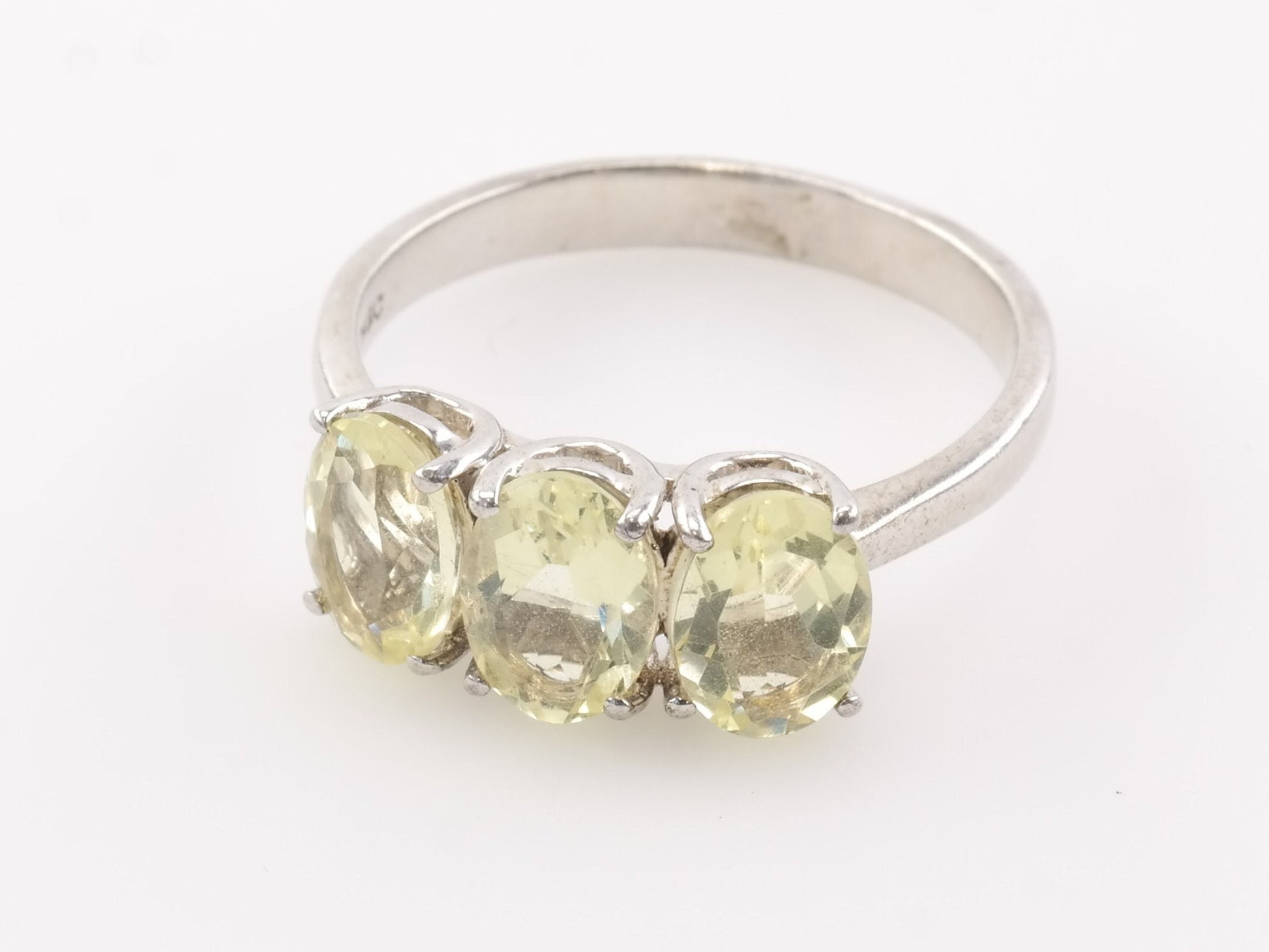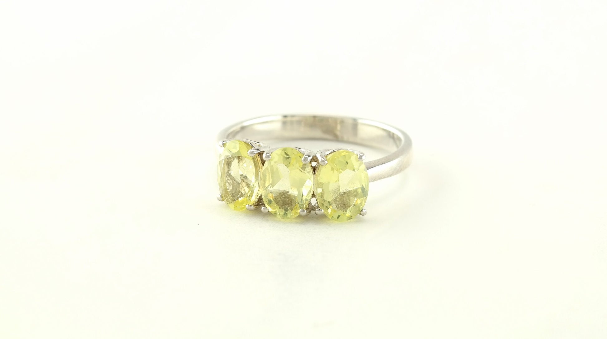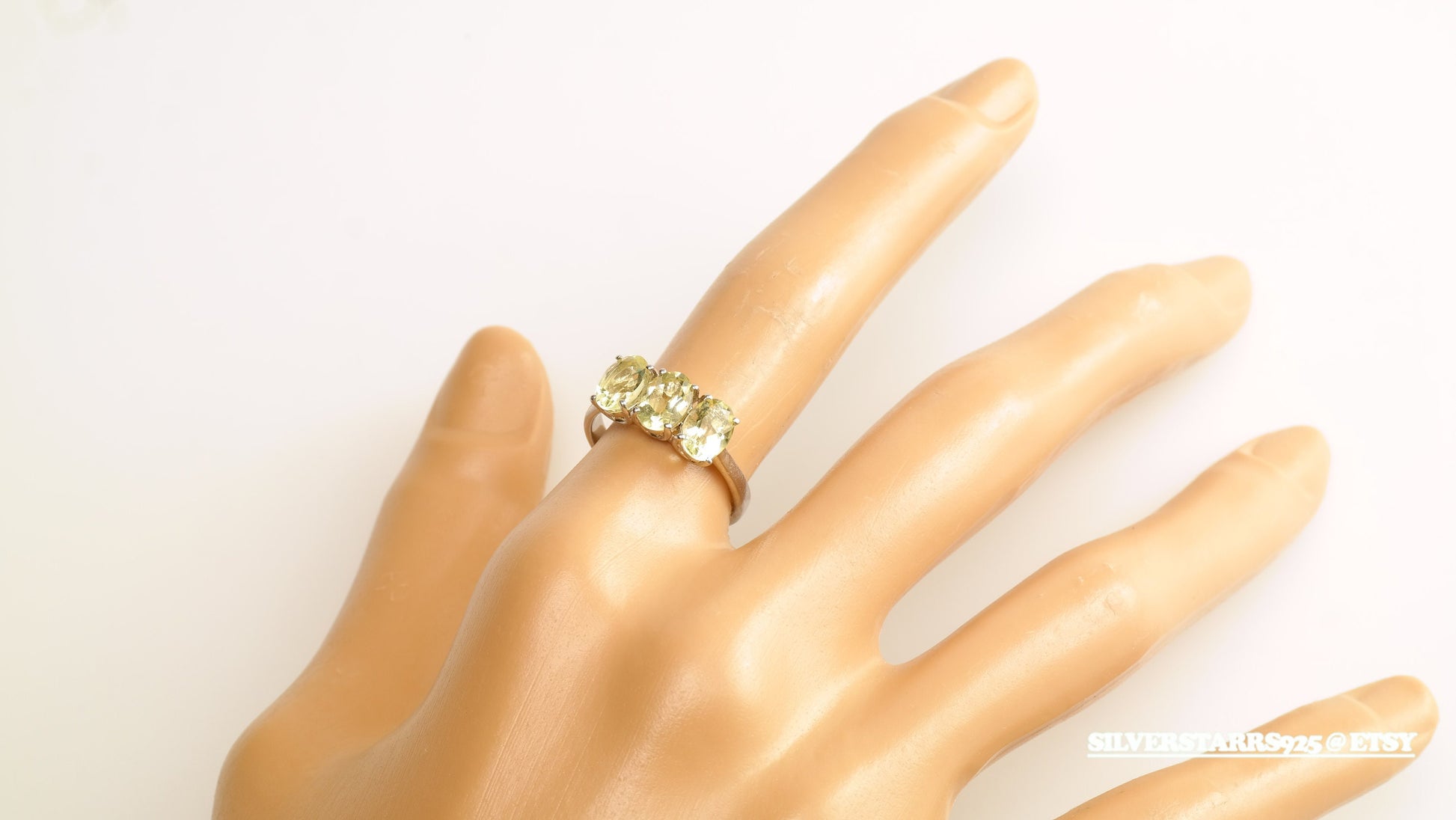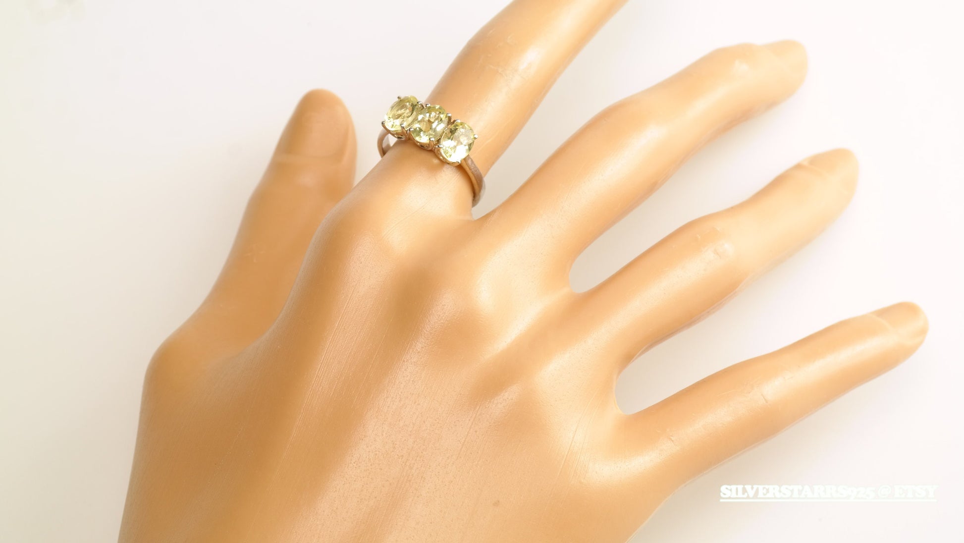 Vintage Yellow CZ Silver Ring Size 7 Three-Stone Sterling