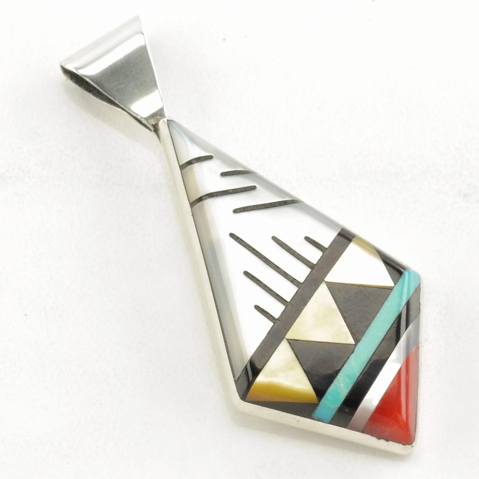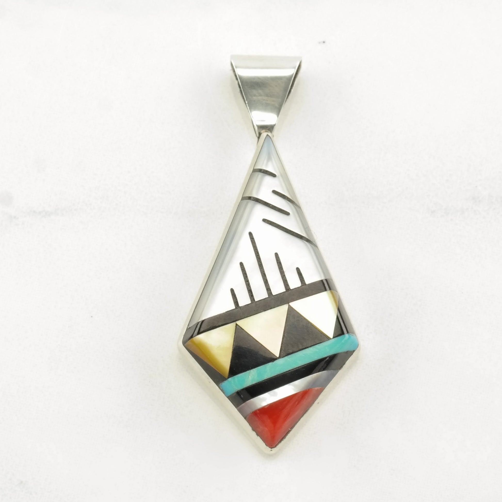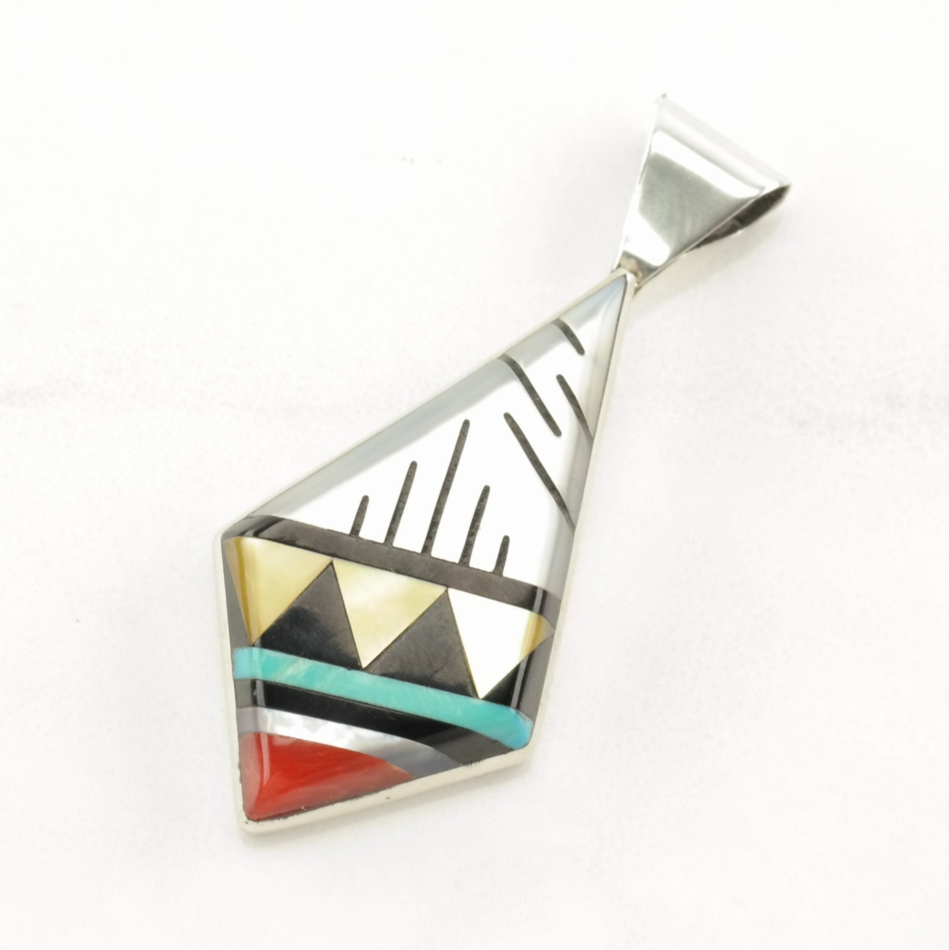 Vintage Zuni Multi Stone Inlay, Geometric Sterling Silver Pendant