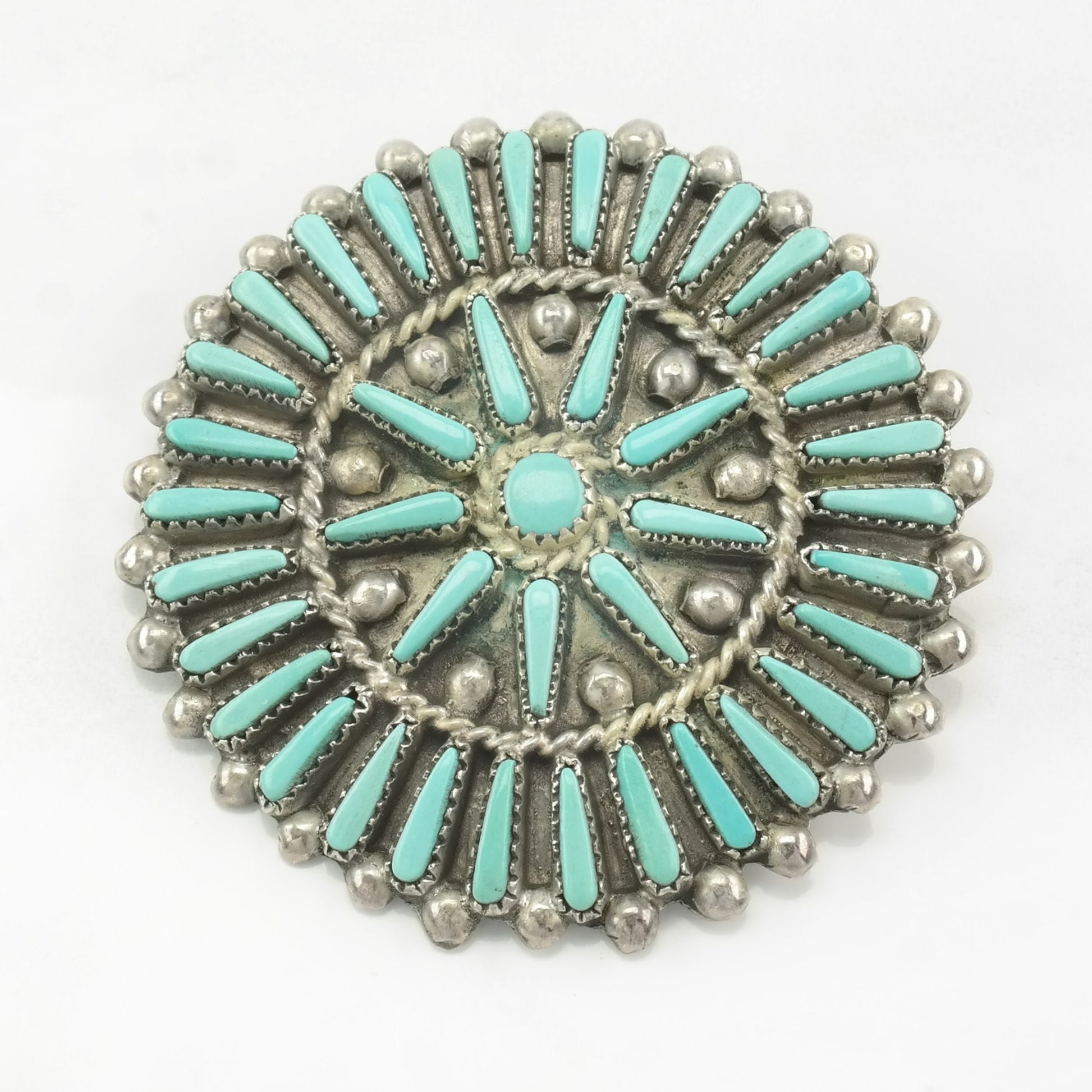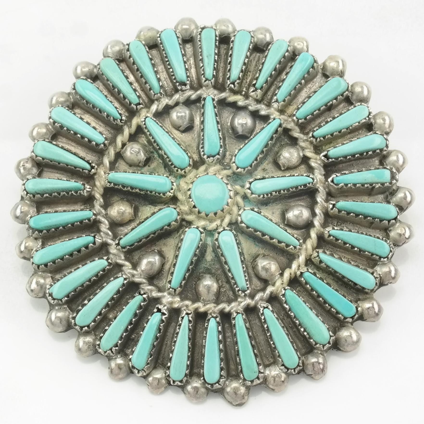 Zuni Brooch Pendant Cluster Blue Turquoise Sterling Silver