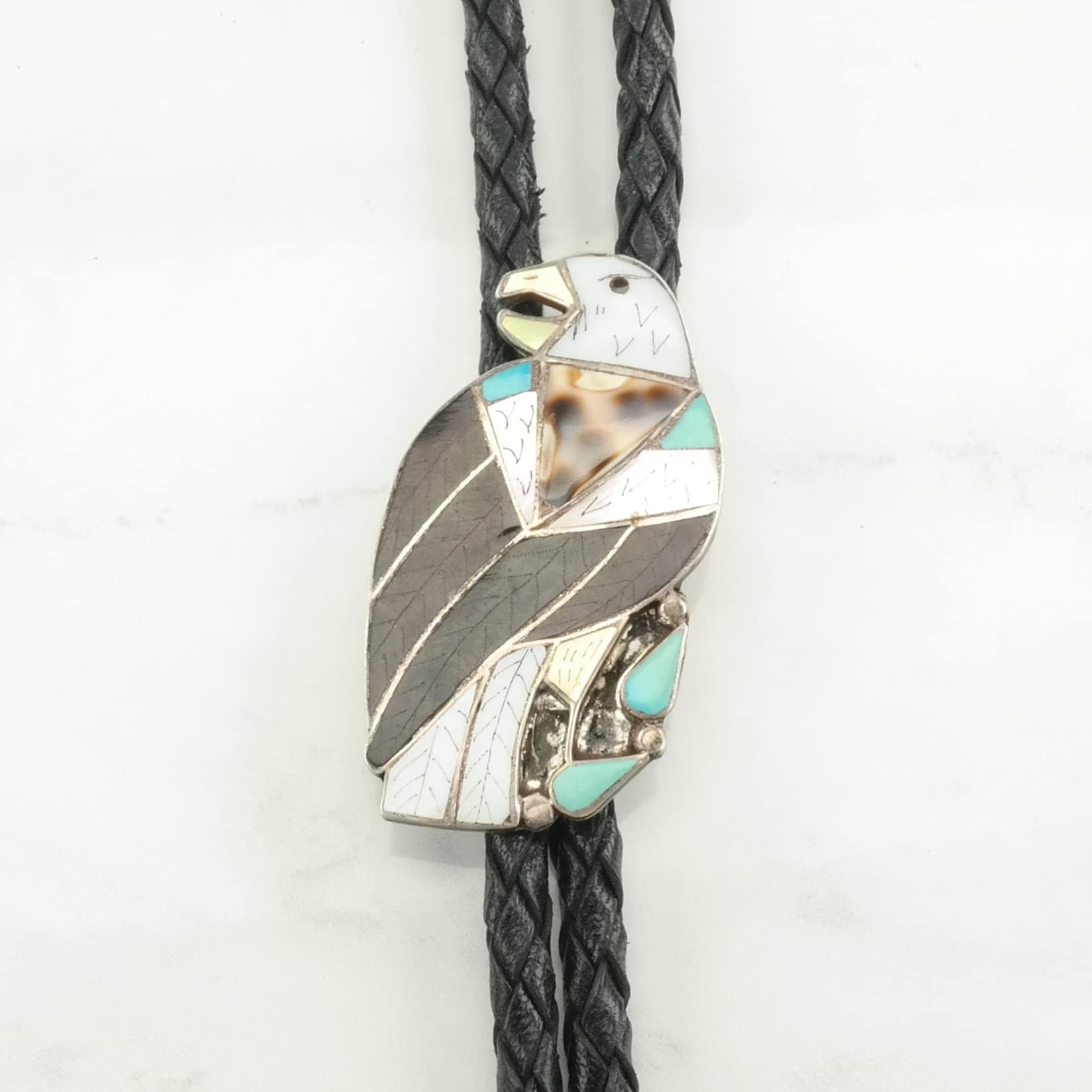 Zuni Eagle Inlay Bolo Tie Native American Sterling Silver Turquoise Necklace Leekity