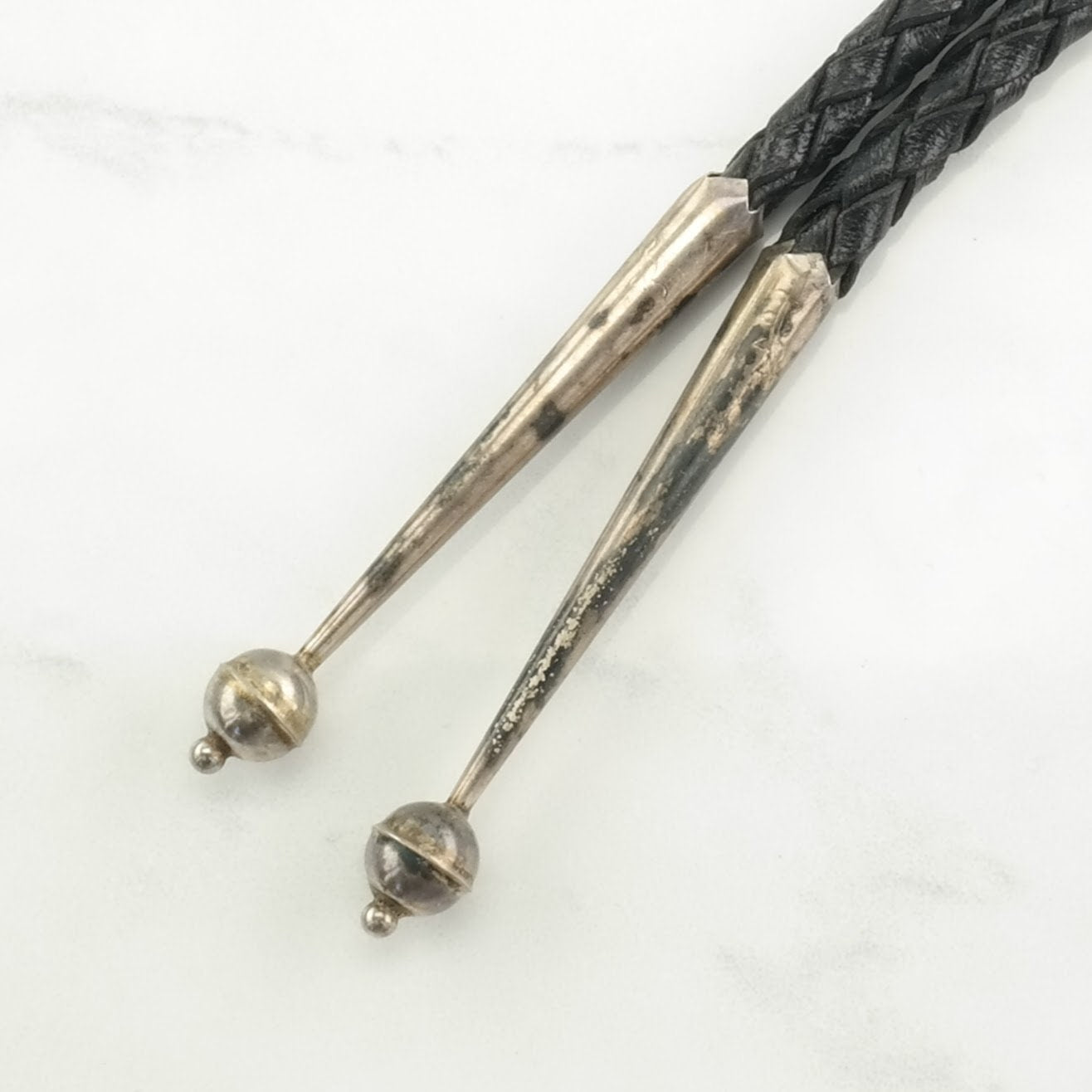 Vintage Native American CD Leekity Sterling Silver MOP, Onyx, Turquoise Inlay, Eagle Bolo Tie Necklace