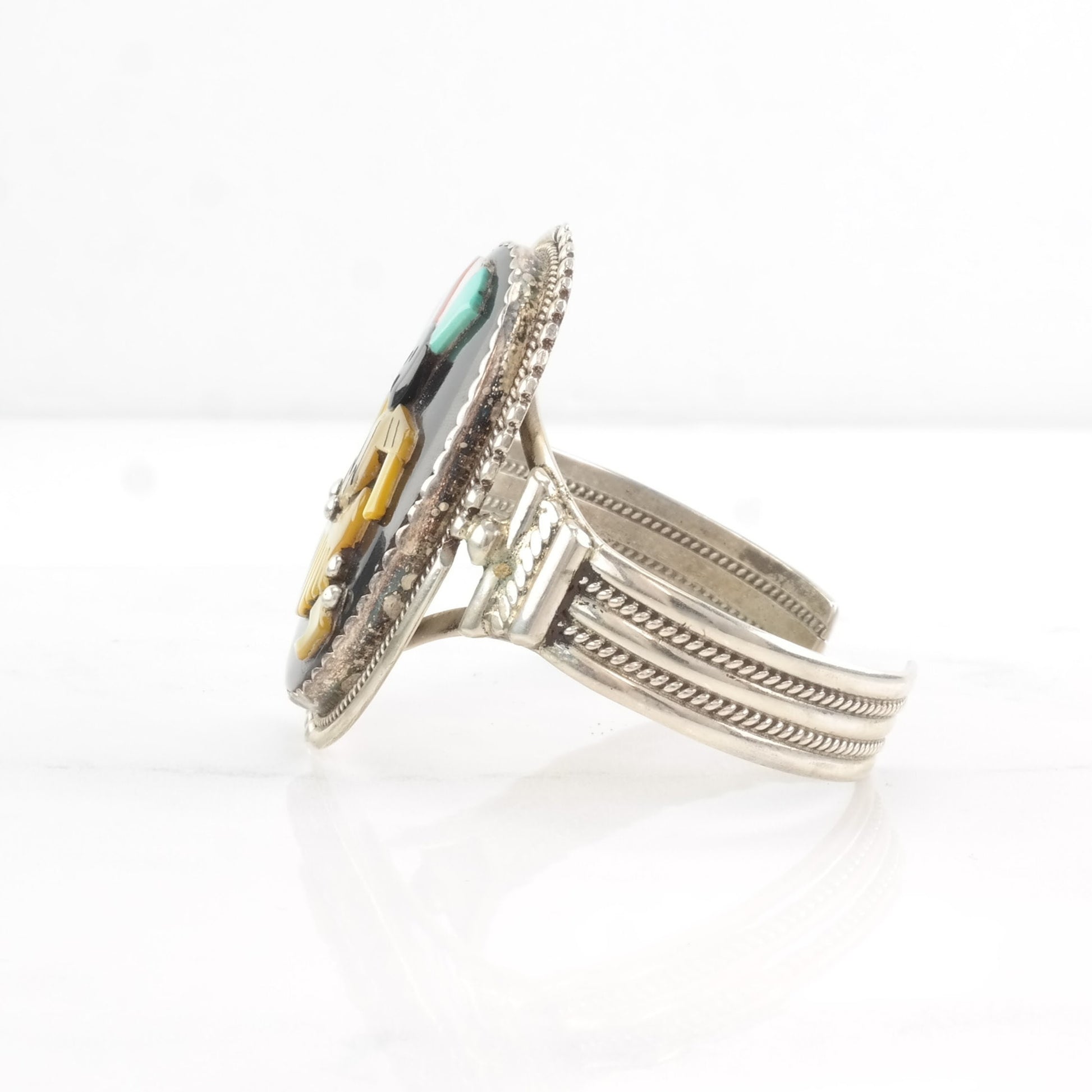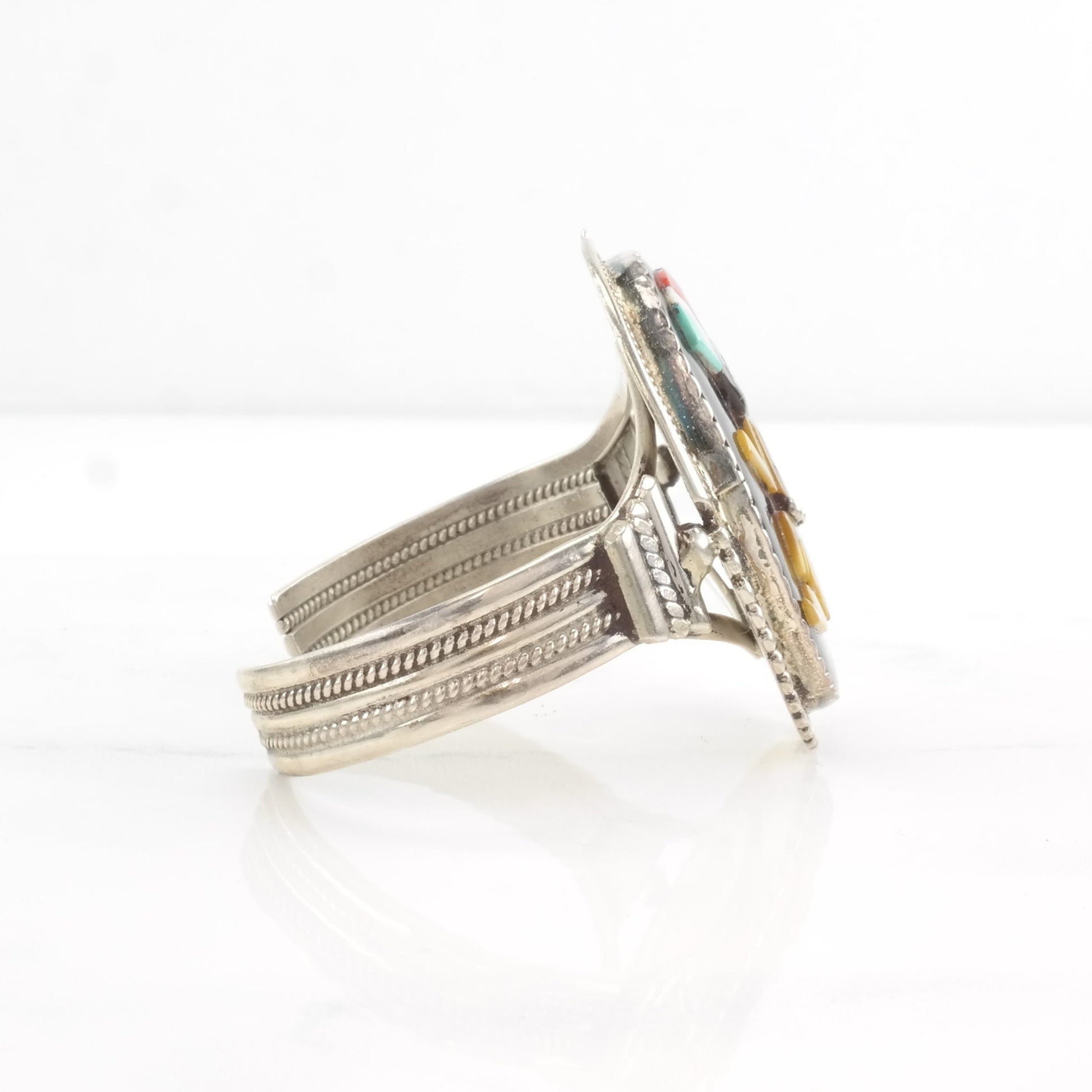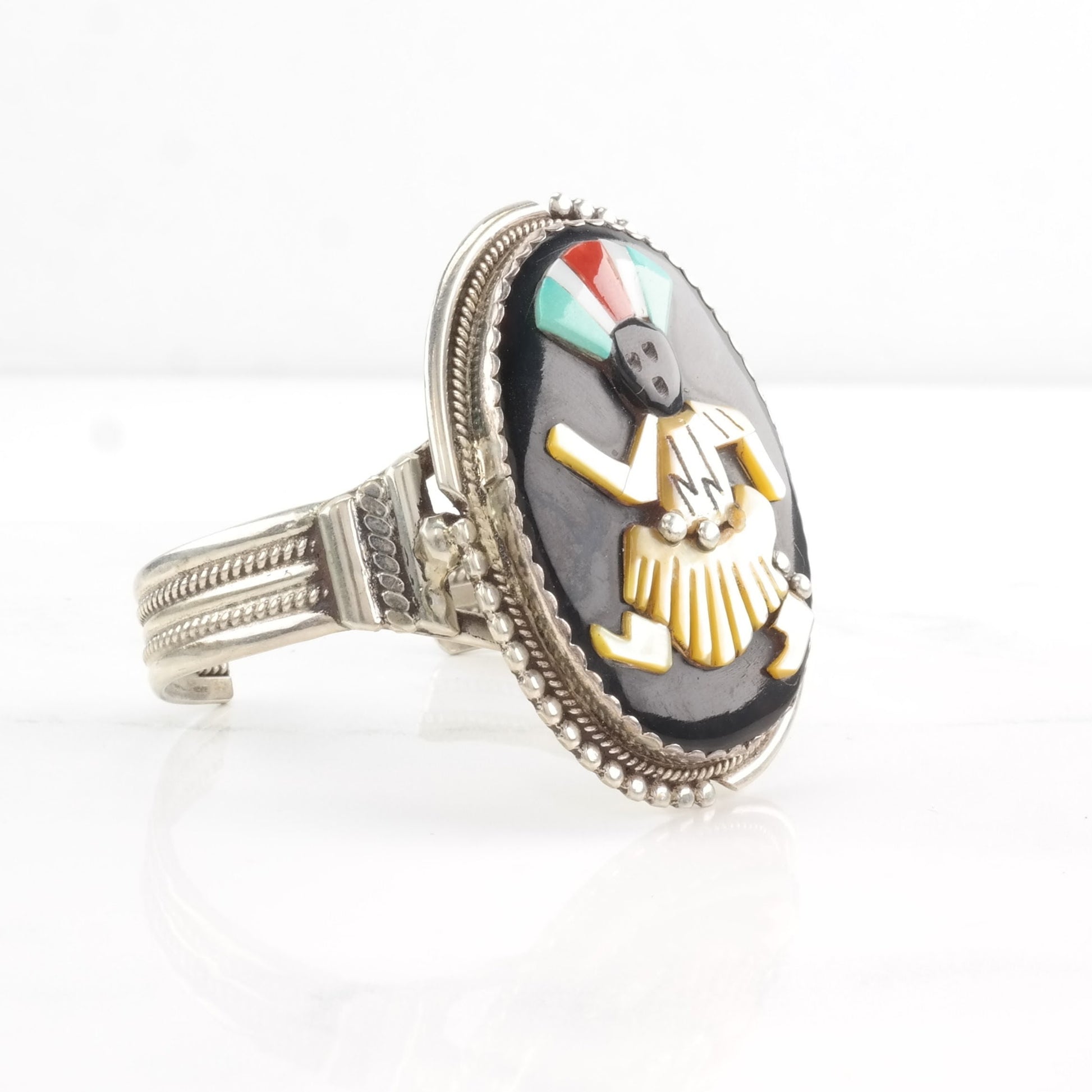 Zuni Inlay Cuff Bracelet Native American Sterling Silver Kachina