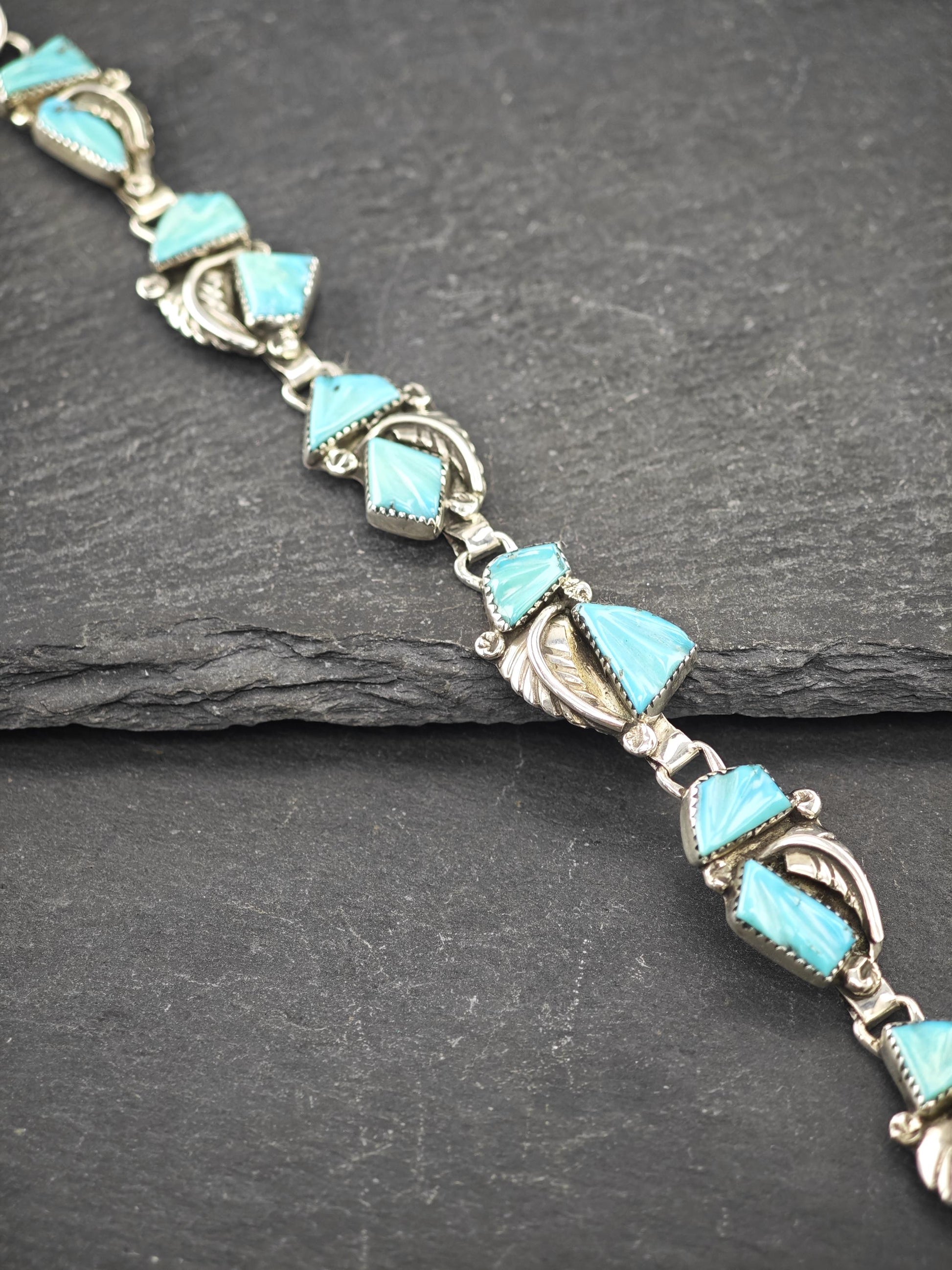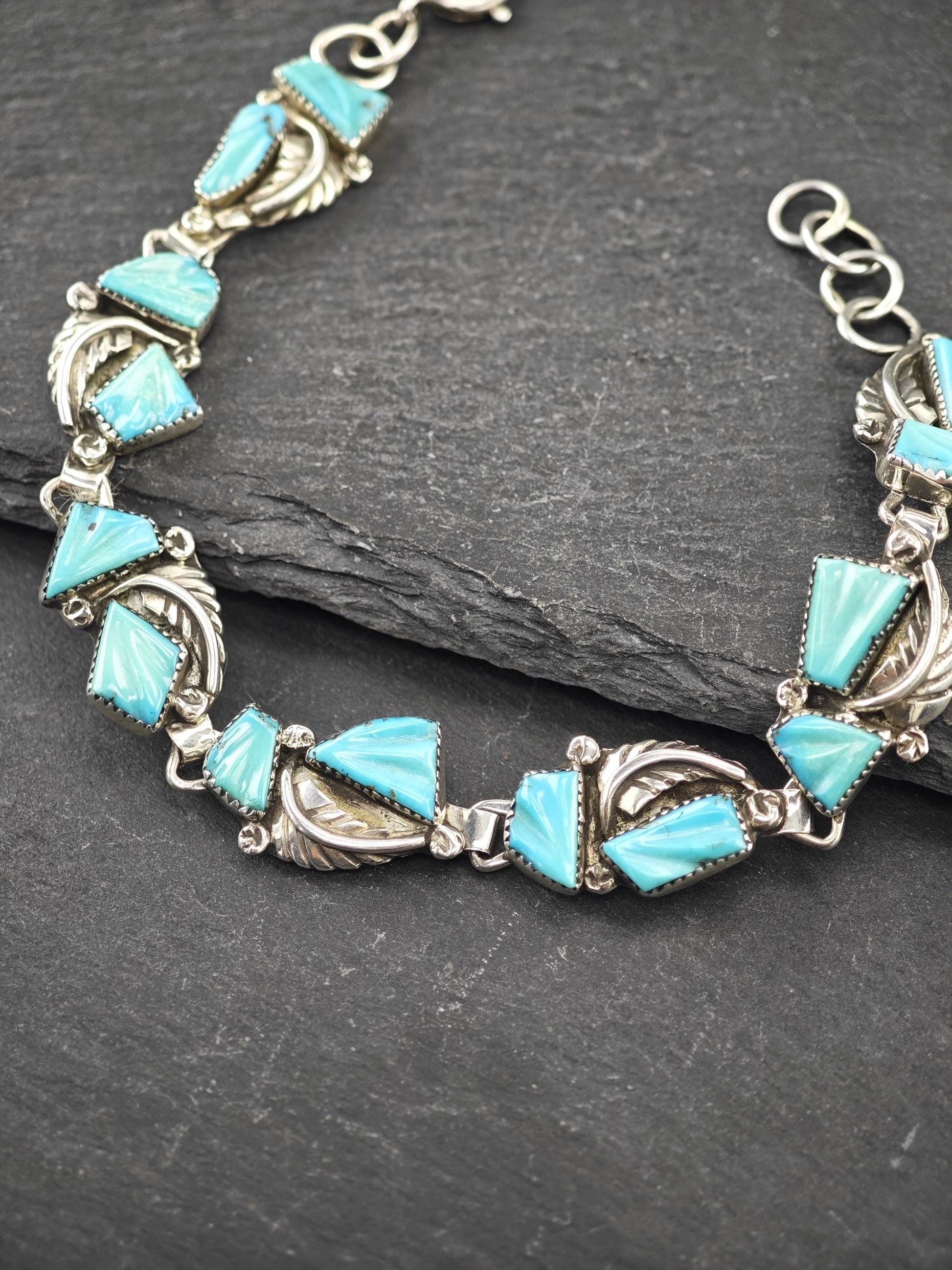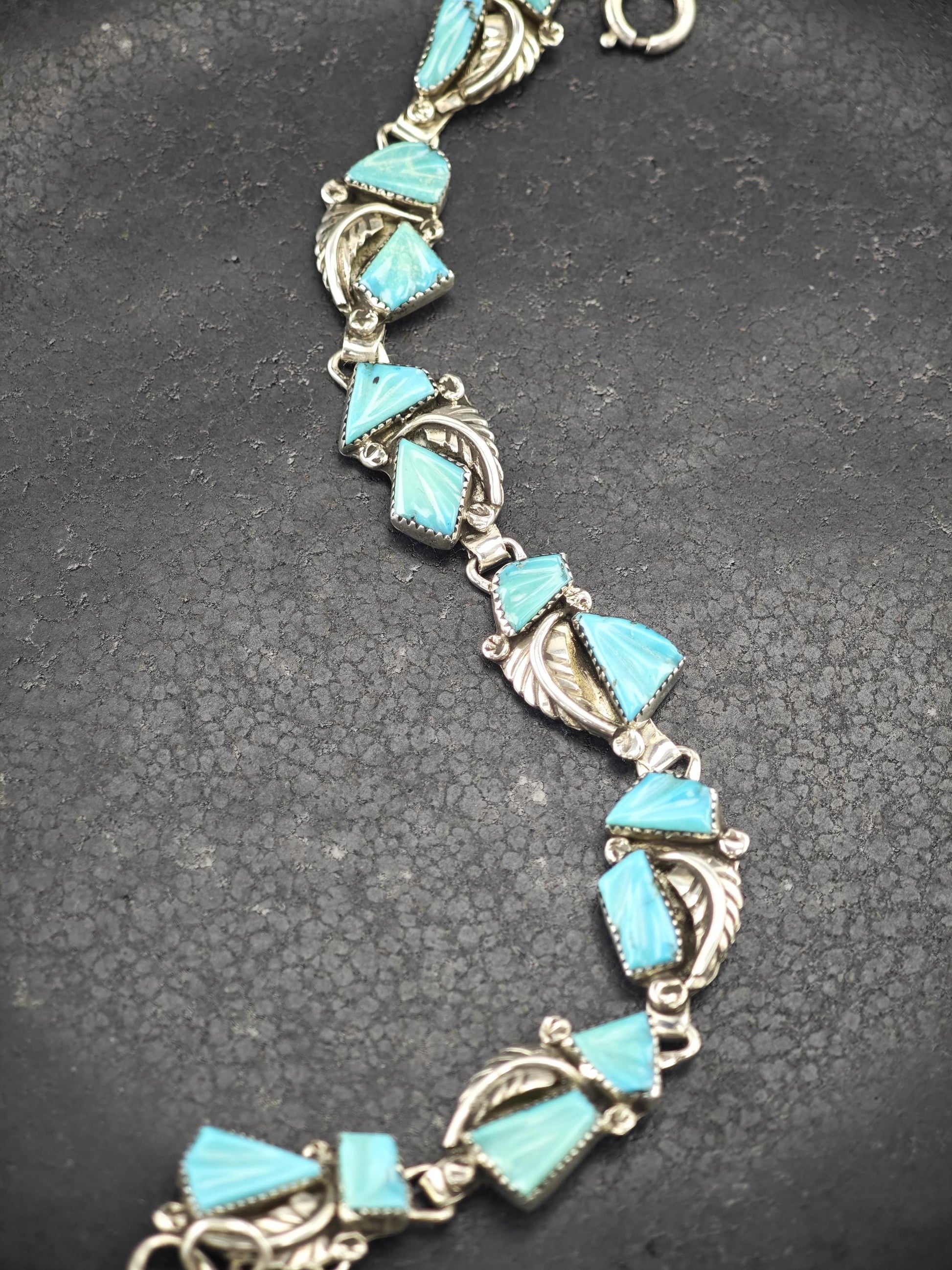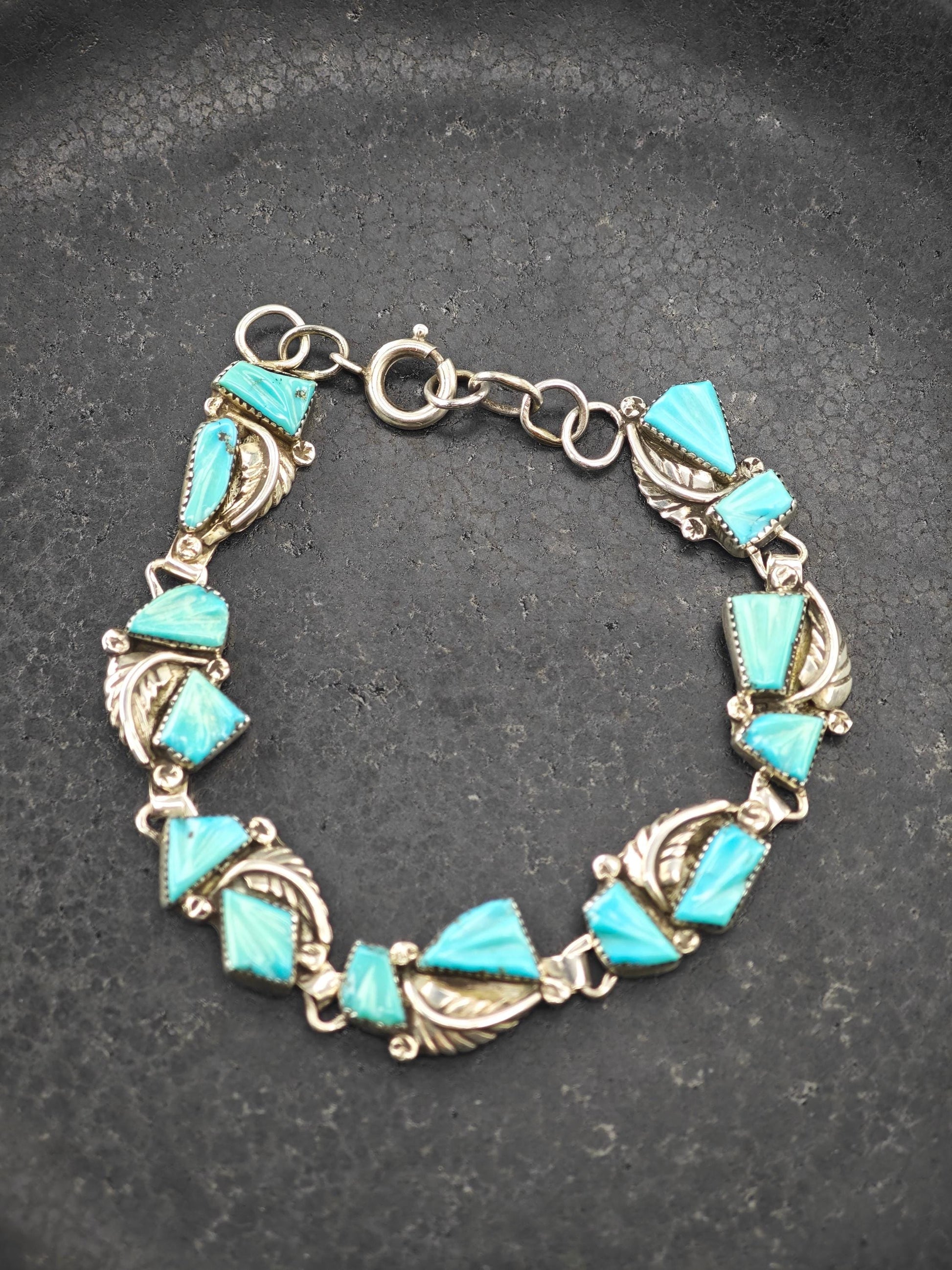 Zuni, Native American Carved Turquoise Bracelet Sterling Silver