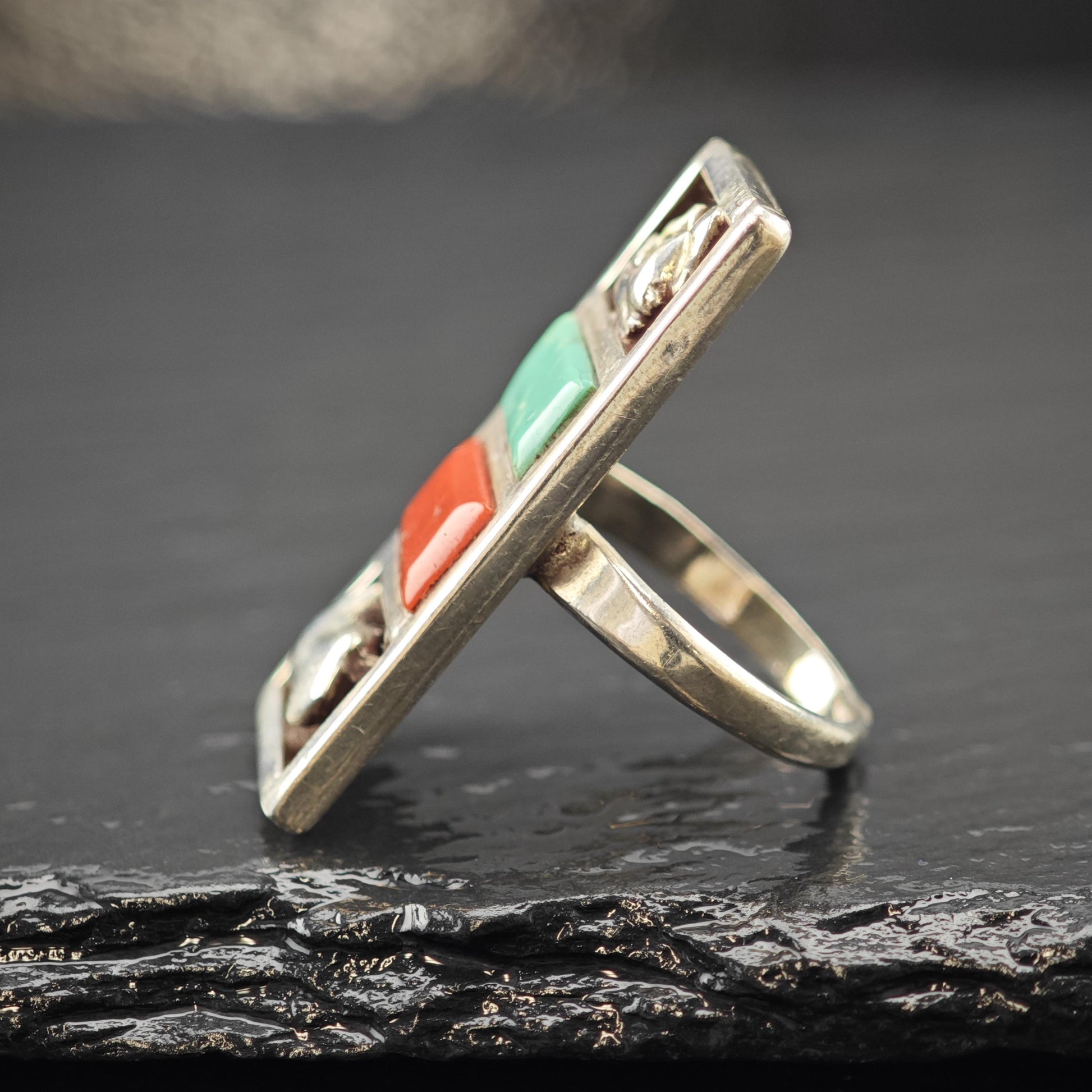 Discover the timeless allure of this Native American ring, beautifully crafted with turquoise and coral inlay that captures the rich heritage of Zuni artistry. This sterling silver ring, sized 6, offers a unique vintage charm perfect for anyone seeking a meaningful piece of jewelry. Whether you're drawn to silver rings or searching for a special holiday gift, this piece blends cultural significance with elegant design.