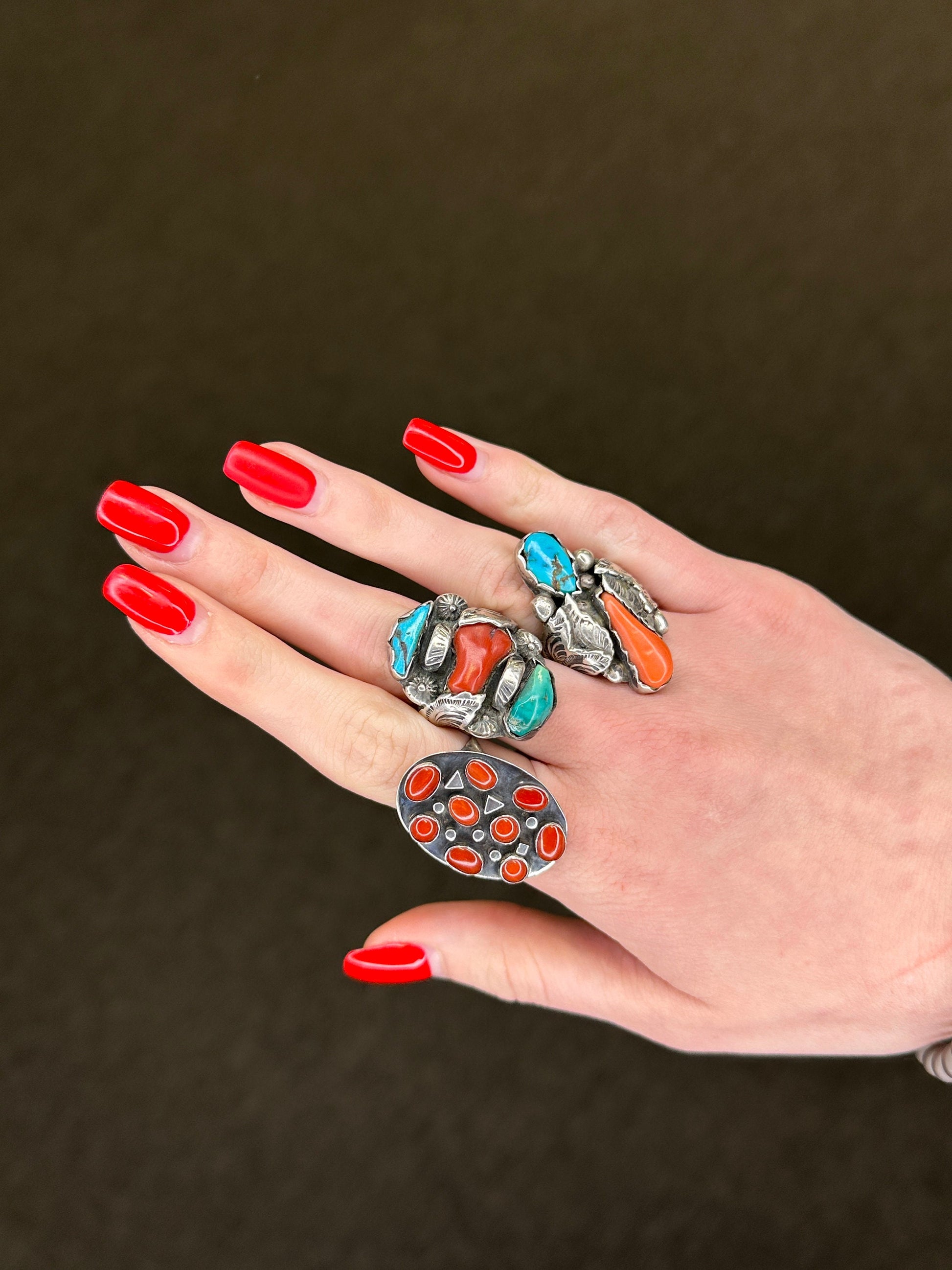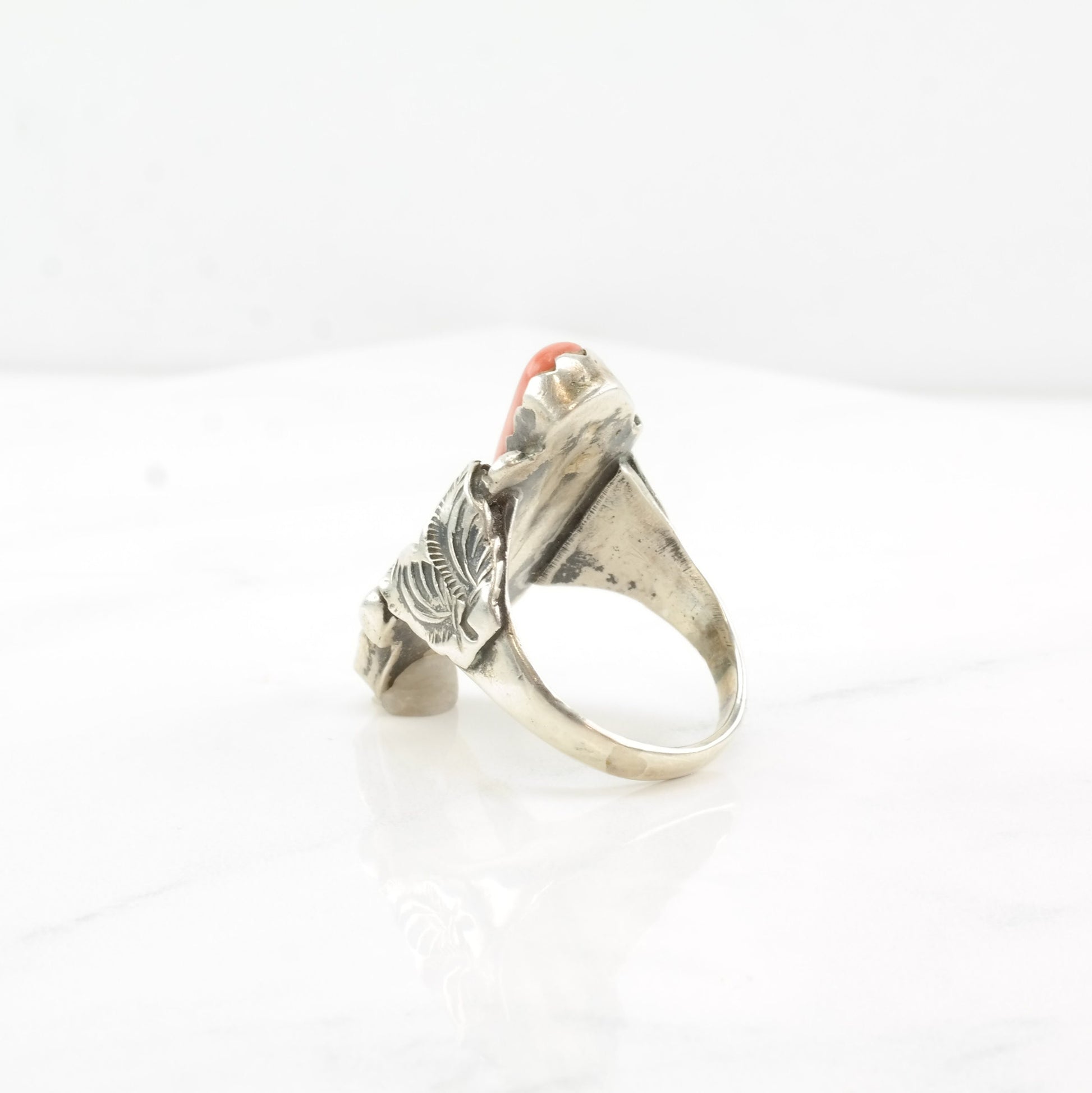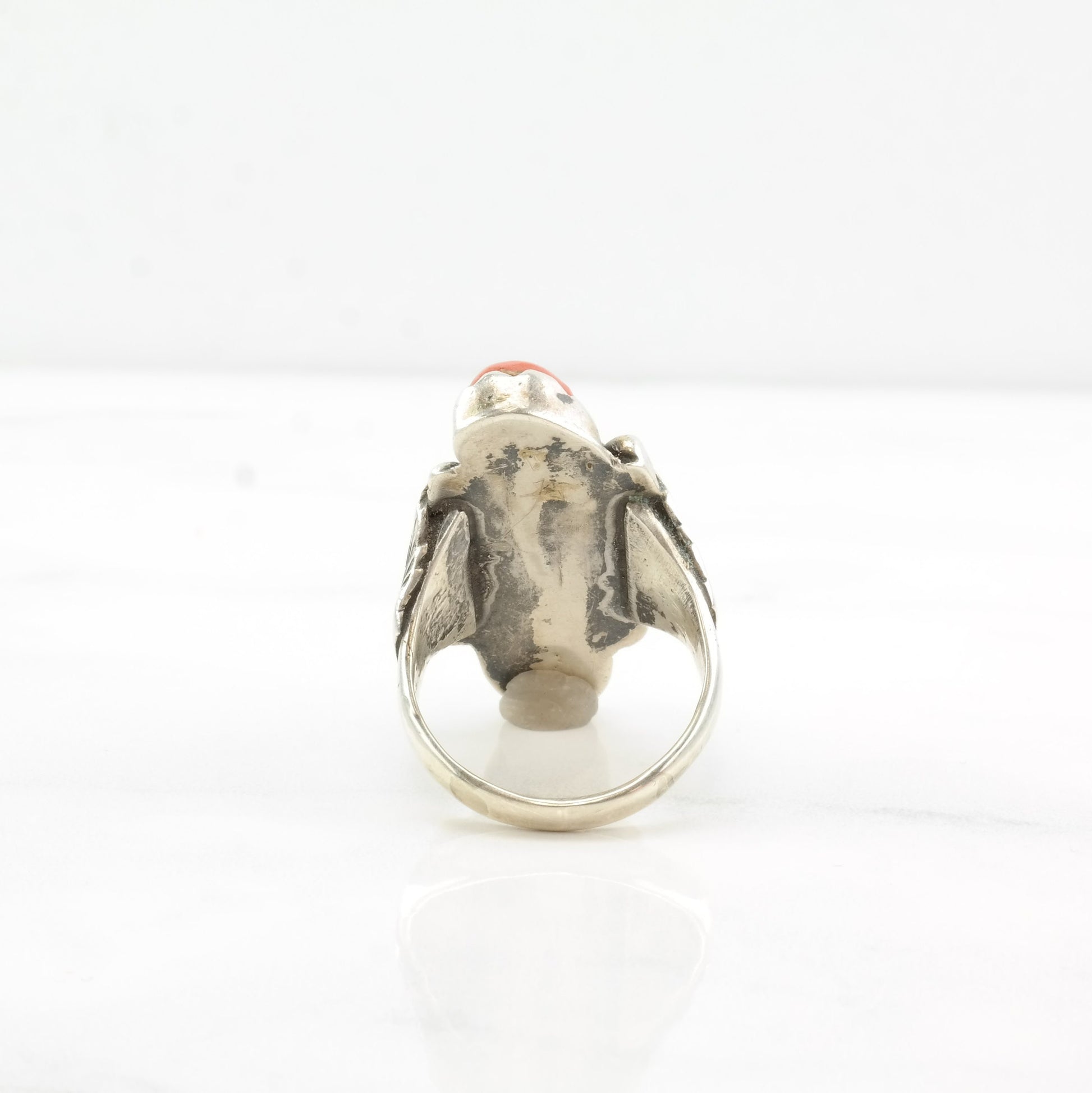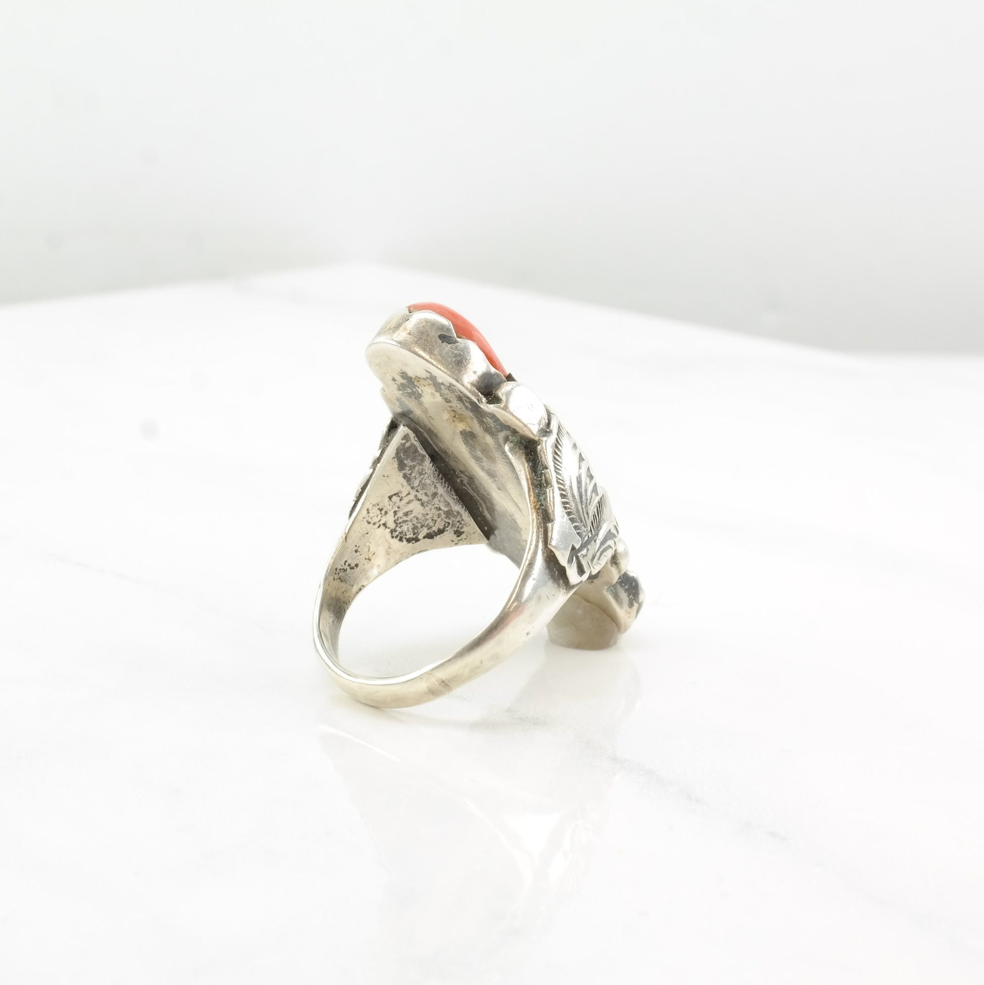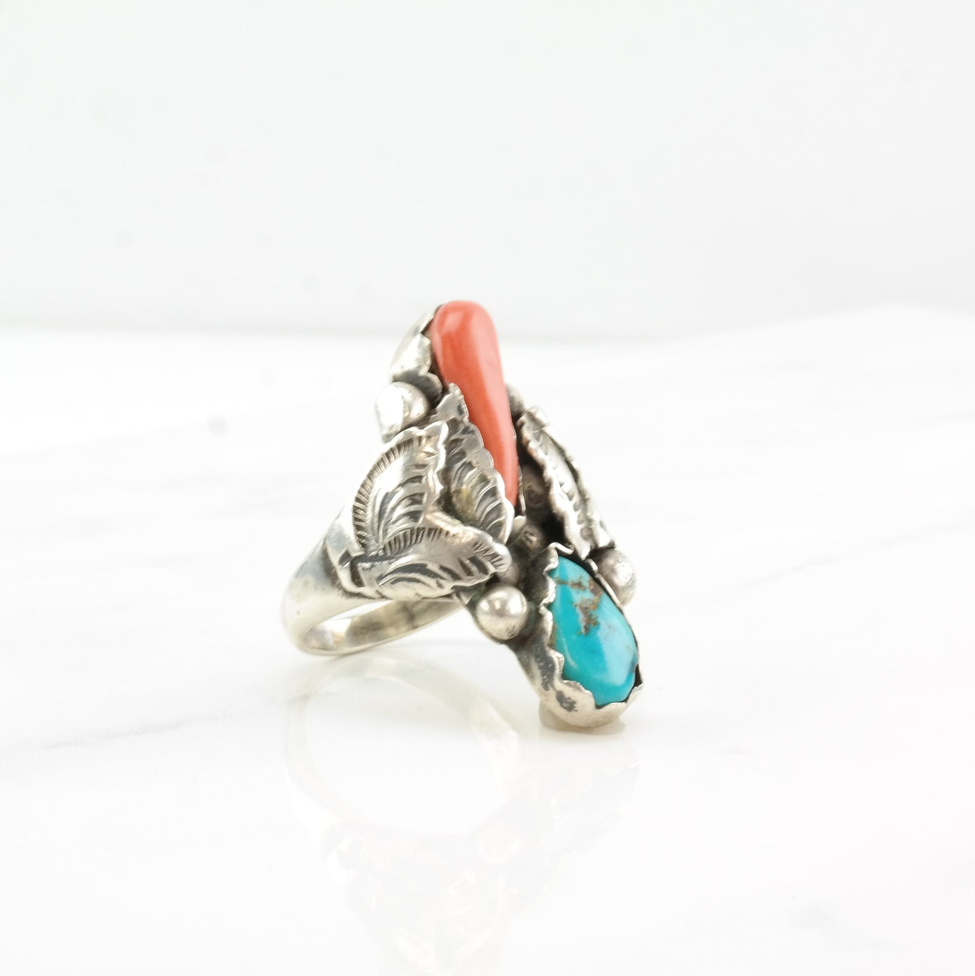 Zuni Sterling Silver Turquoise Coral Ring Native American