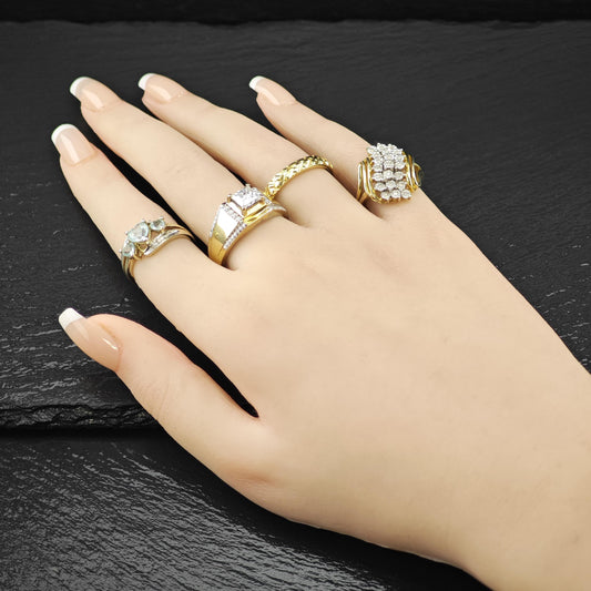 1.5cttw Silver Ring Diamond Gold Toned, Pave Sterling Sz6 R5301